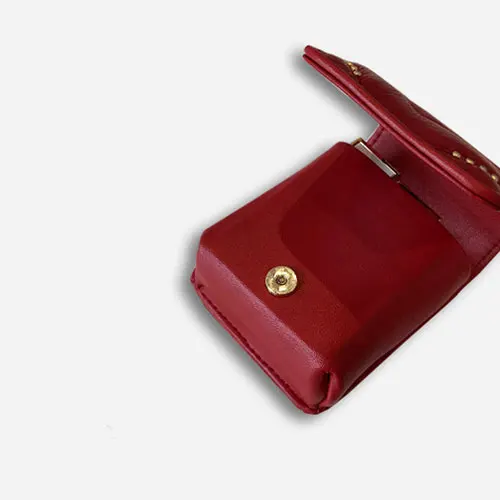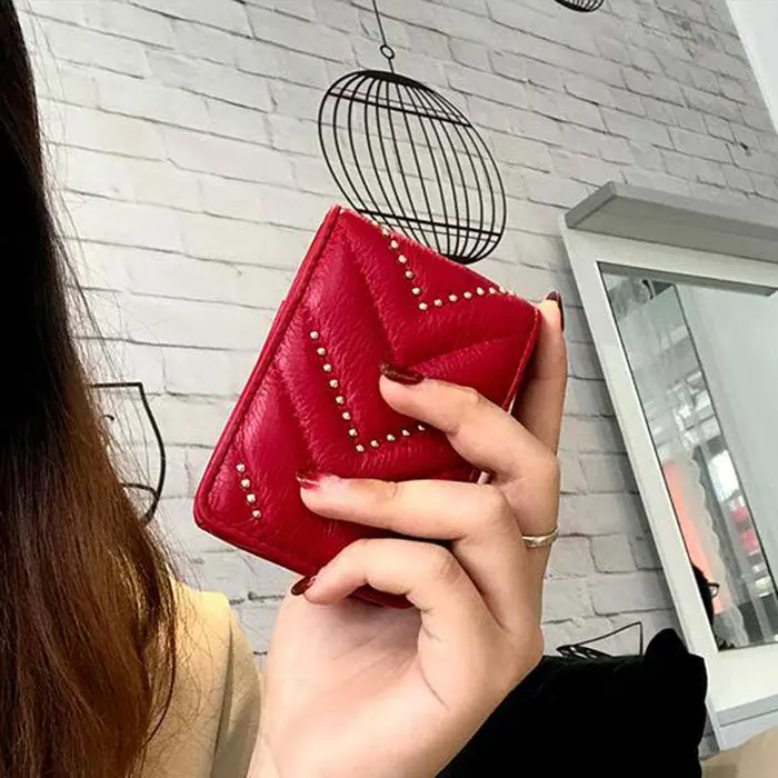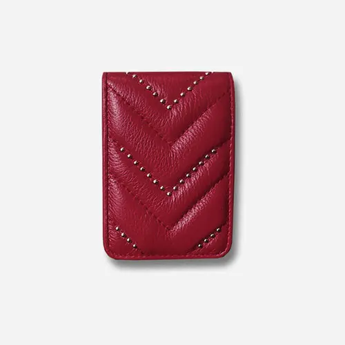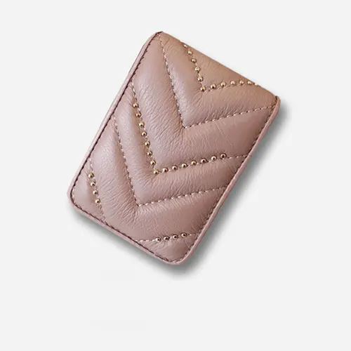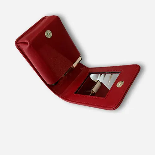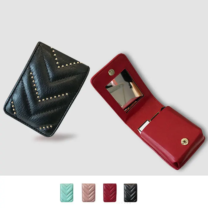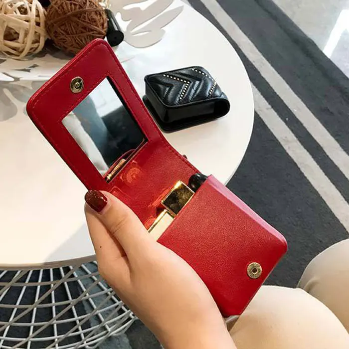 Women Genuine Leather Lipstick Makeup Bag V Wave Pattern Ladies Portable Mirror Case Lambskin Designer Make Up handbag