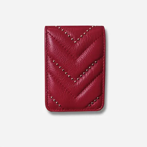 Women Genuine Leather Lipstick Makeup Bag V Wave Pattern Ladies Portable Mirror Case Lambskin Designer Make Up handbag