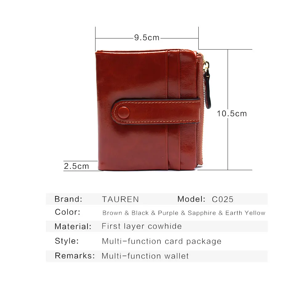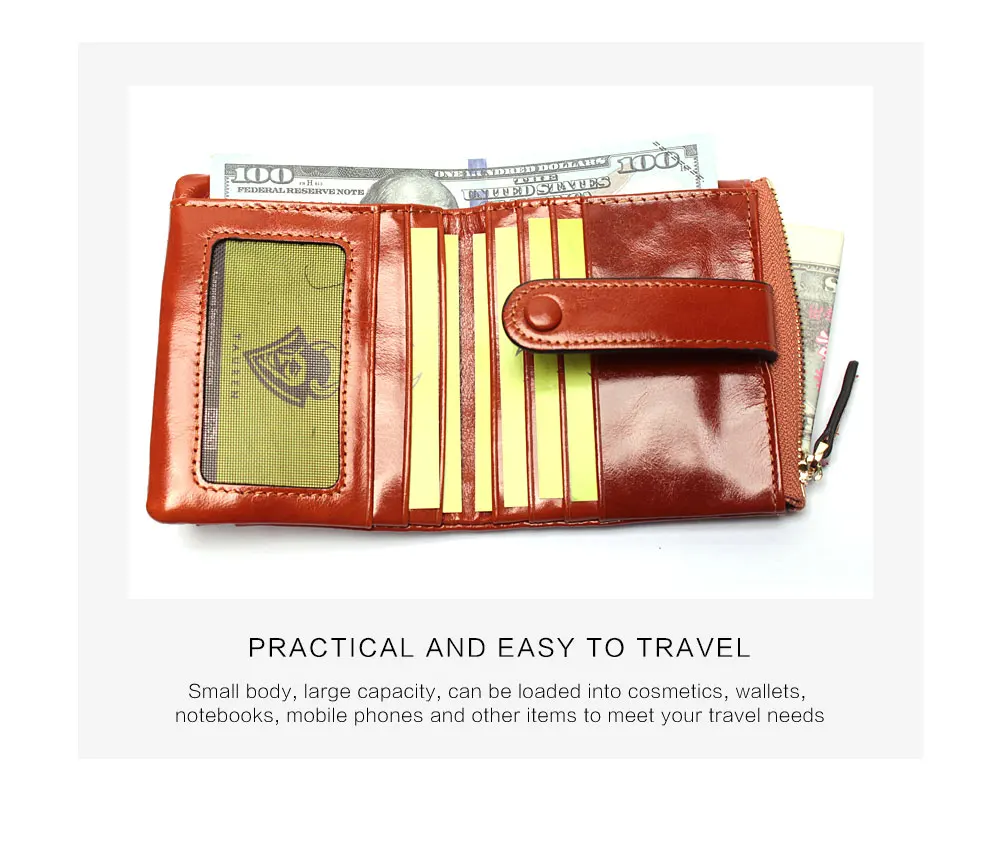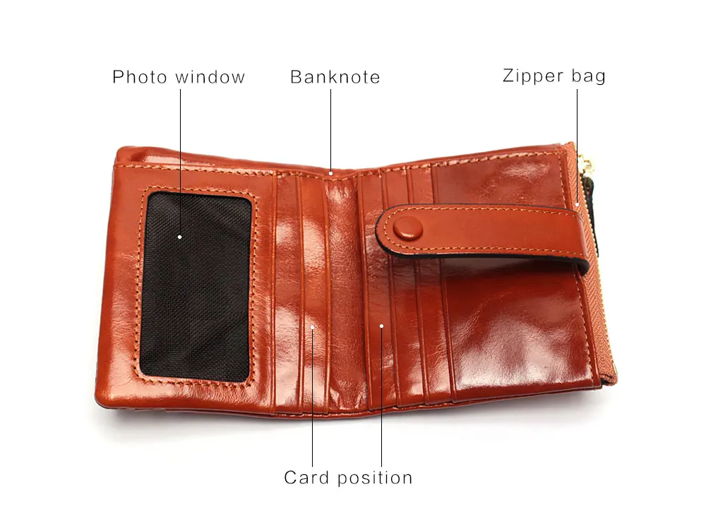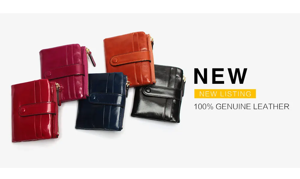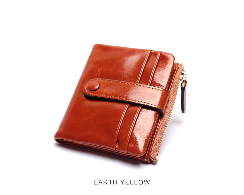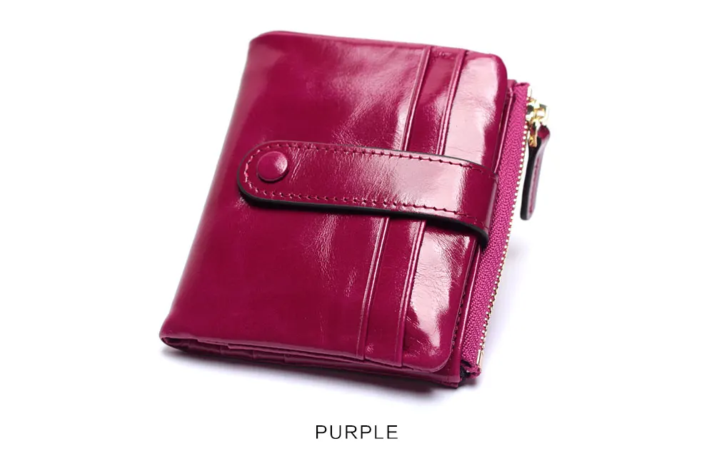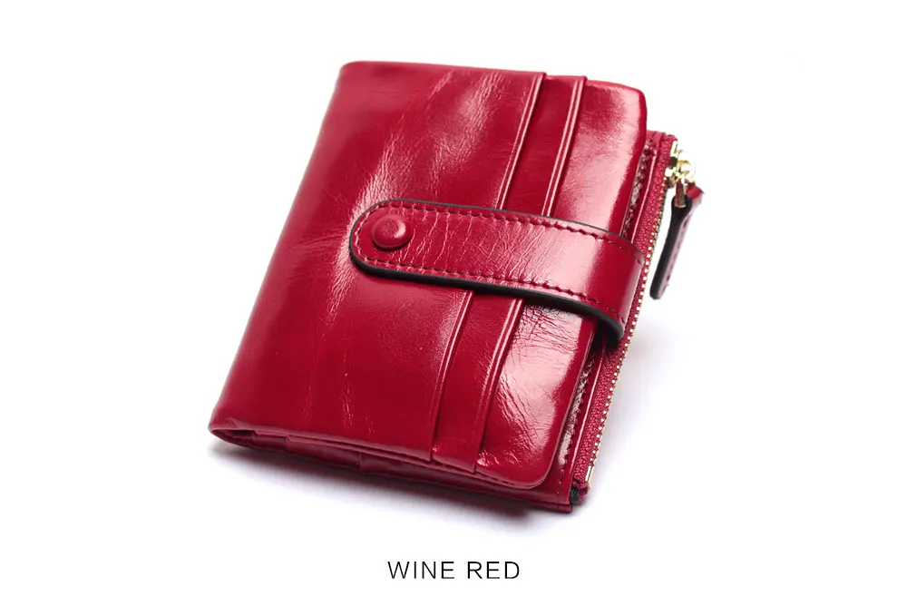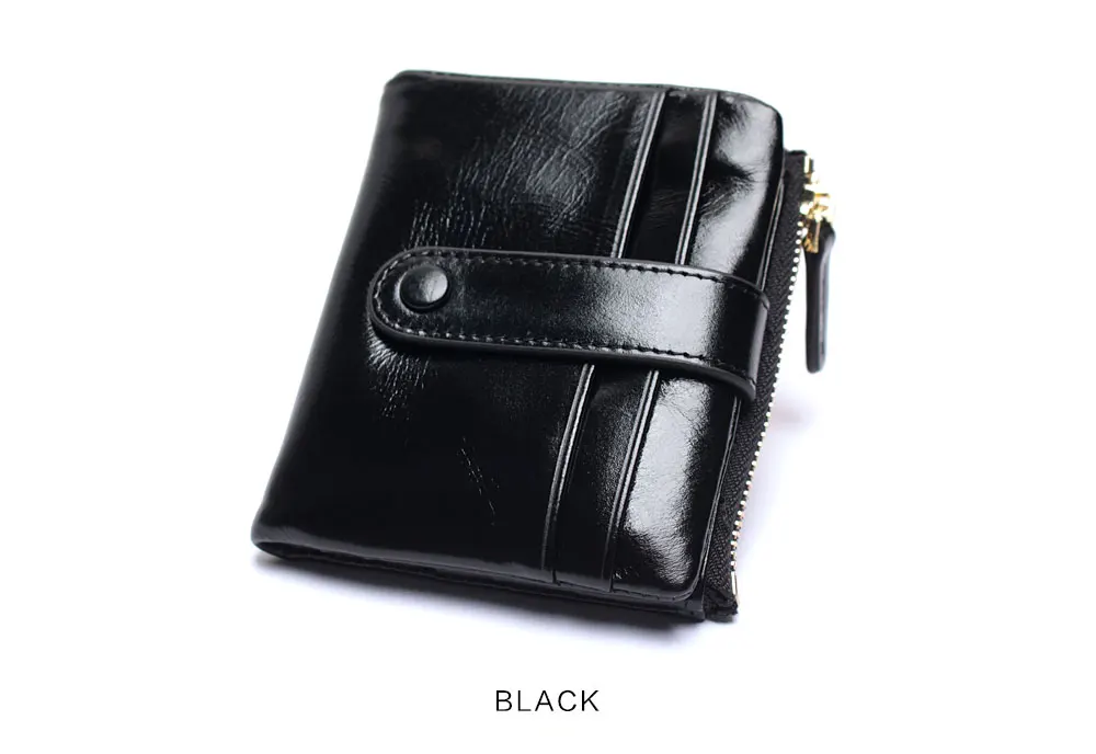 Women Genuine Leather Wallet Mini Card Holder Ladies Oil Wax Hasp Short Wallets Purse Coin Bags