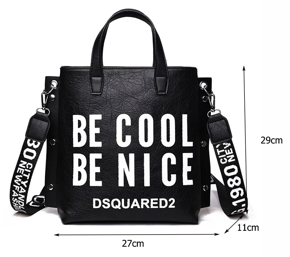 note: The letters on the surface of the bag have changed BE COOL→HE COOL BE NICE→HE NICE