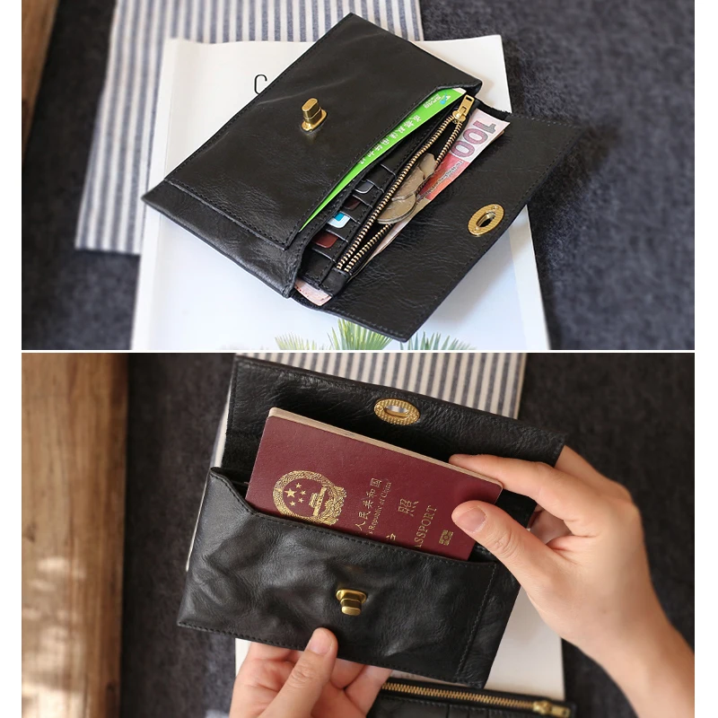 Women Long Wallets Genuine Leather Coin Purses Passport washed Cowhide leather Vintage Phone Wallet Credit Card Purse Money Bag