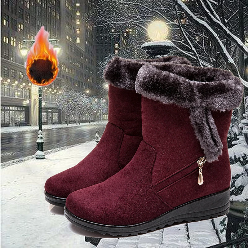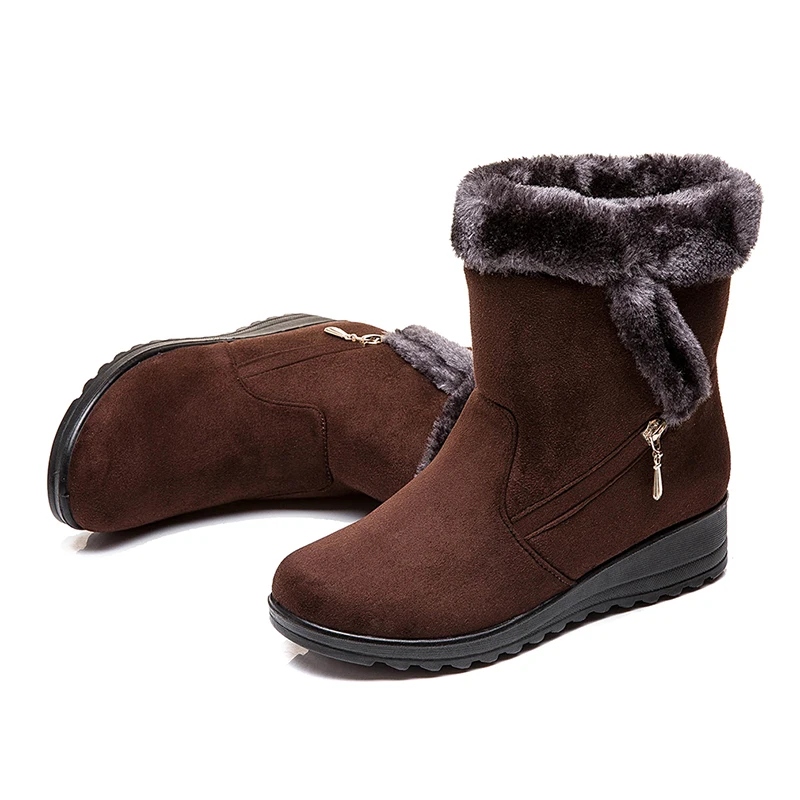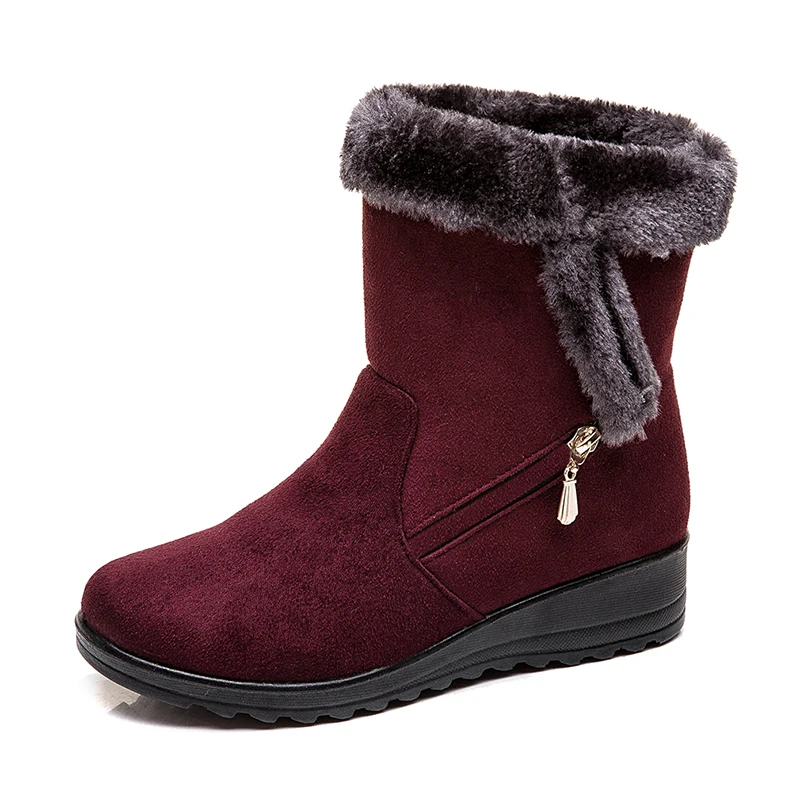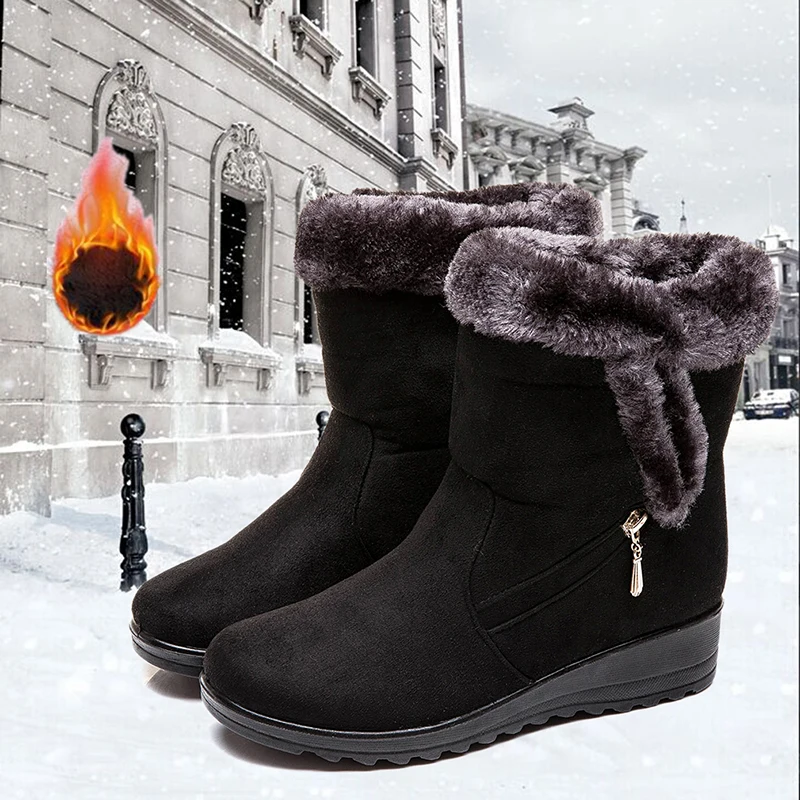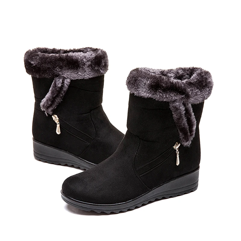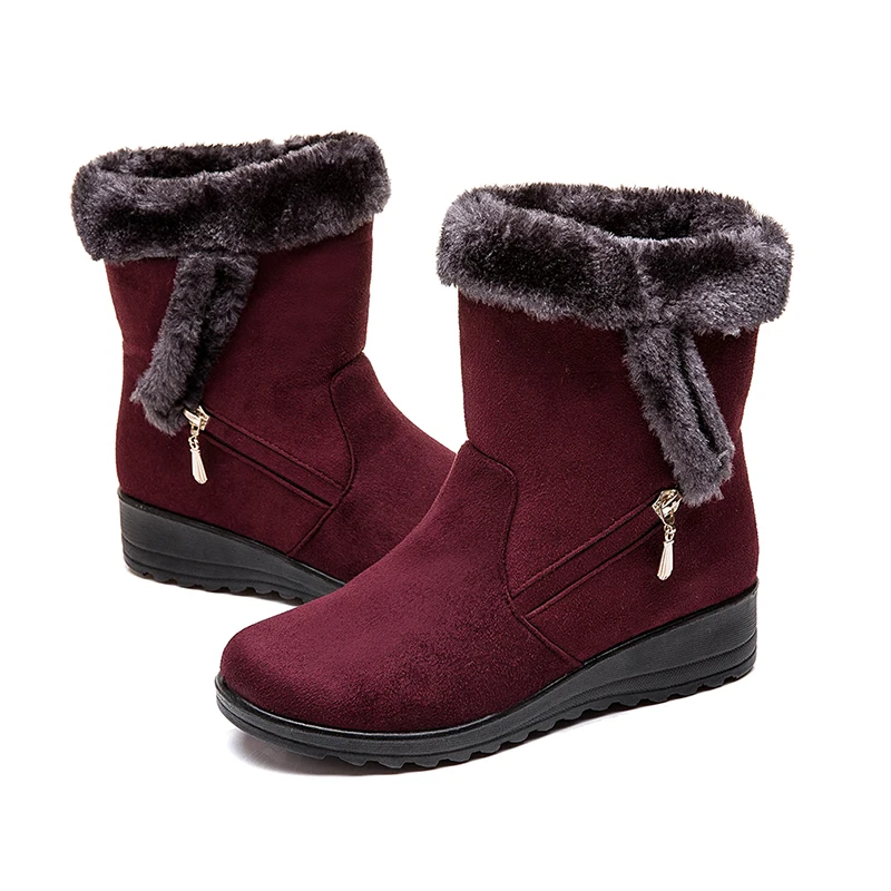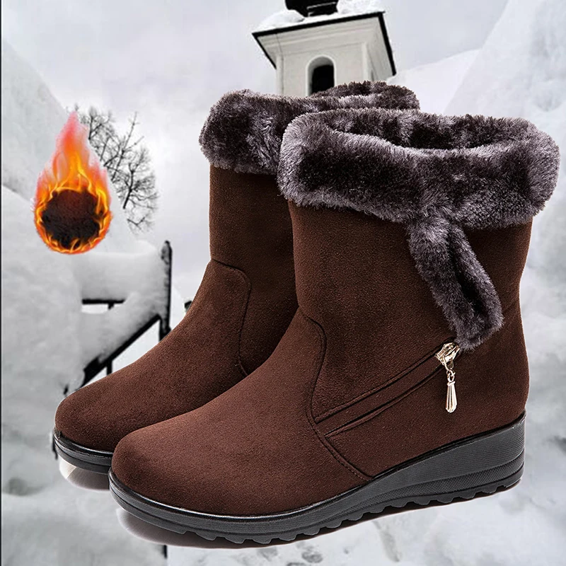 Women Snow Boots Warm Short Fur Plush Winter Ankle Boot Plus Size Platform Ladies Suede Zip Shoes Female Comfort Drop Shipping