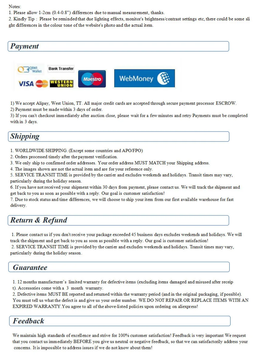 • If you did not receive the product within the guaranteed time( 45 days not including 2-5 day processing) you can request a refund or a reshipment.