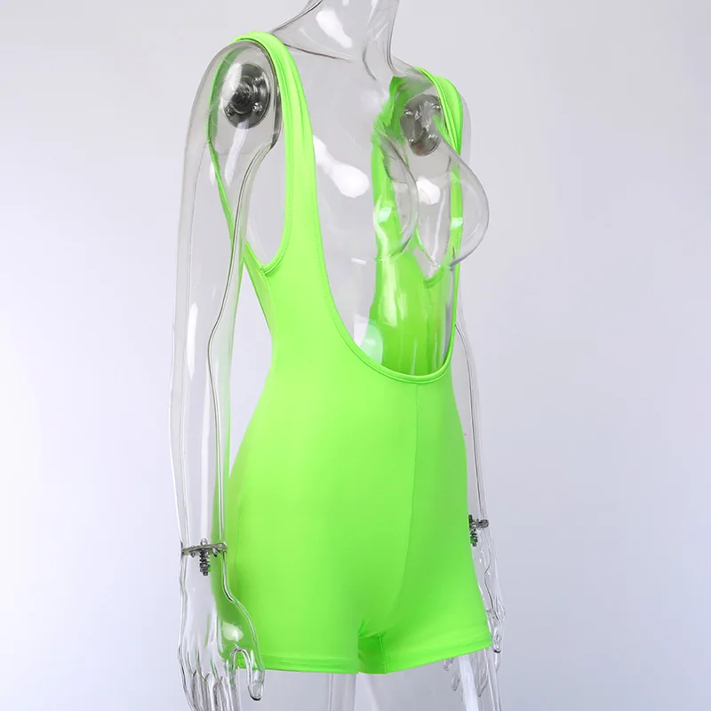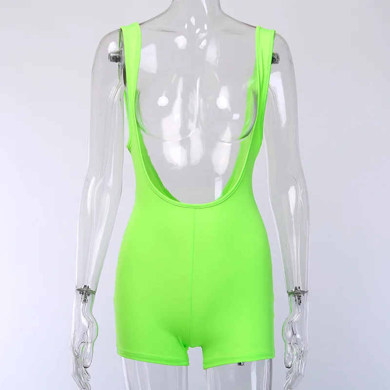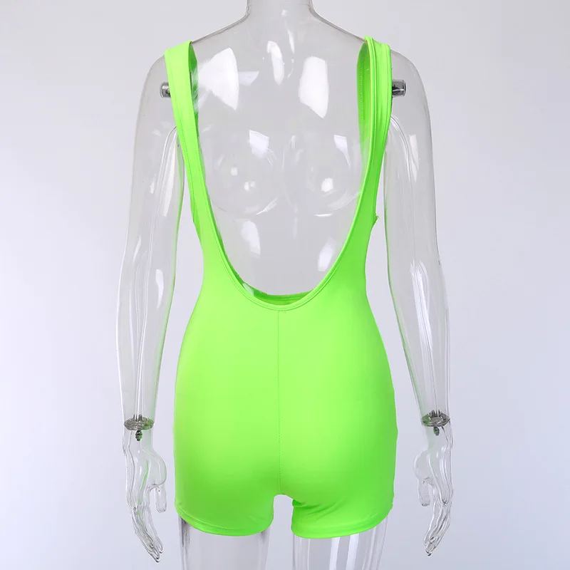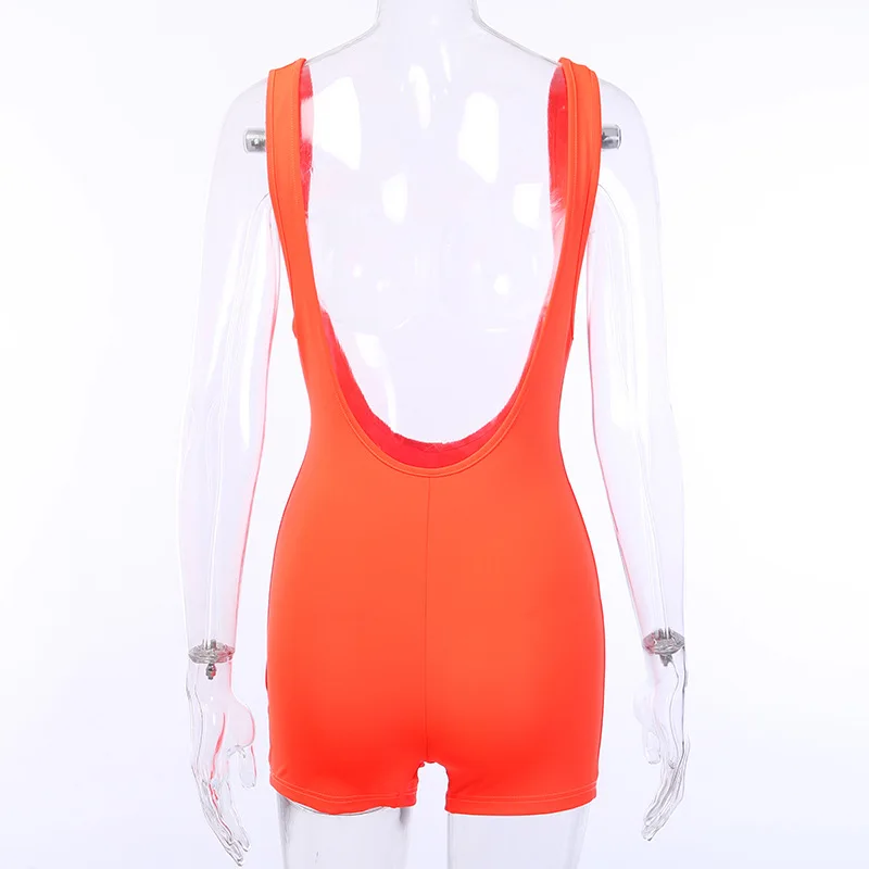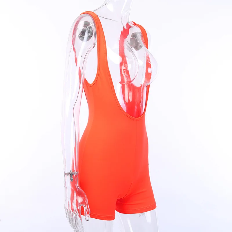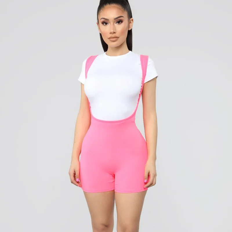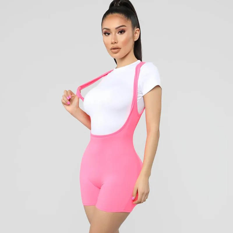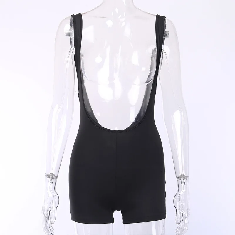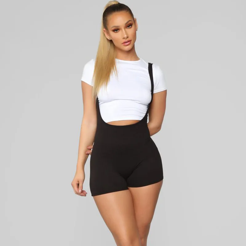 Women Solid Color Stretch GYM Sport Playsuit Summer Casual Overalls Shorts Bodycon Backless Leopard Fitness Straps Shorts Slim