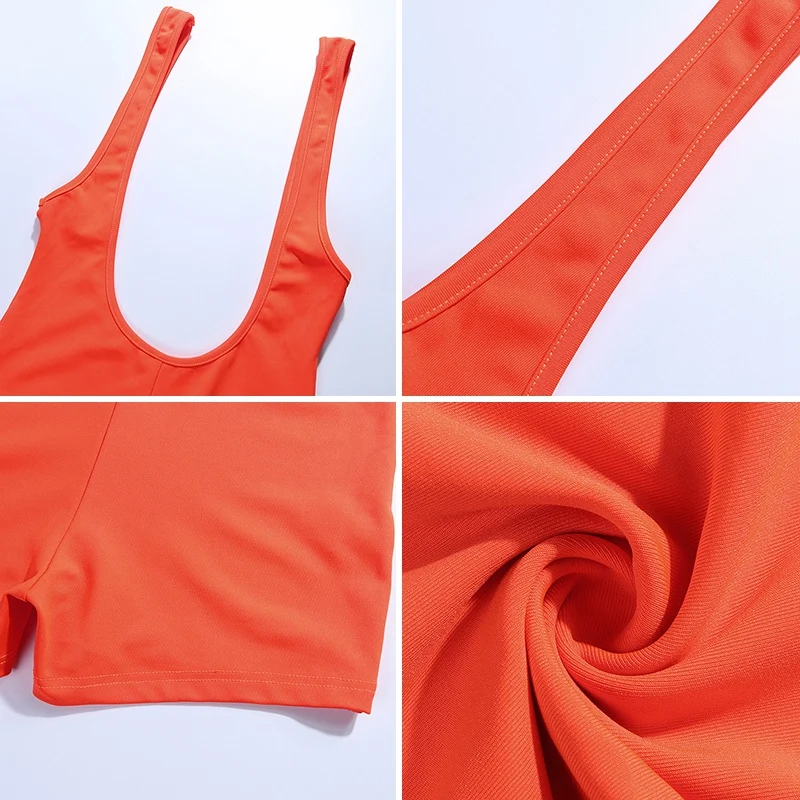 Women Solid Color Stretch GYM Sport Playsuit Summer Casual Overalls Shorts Bodycon Backless Leopard Fitness Straps Shorts Slim
