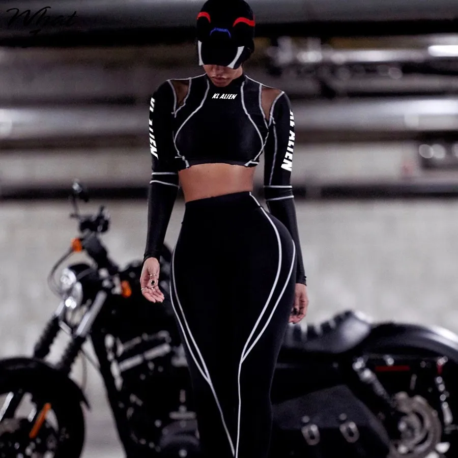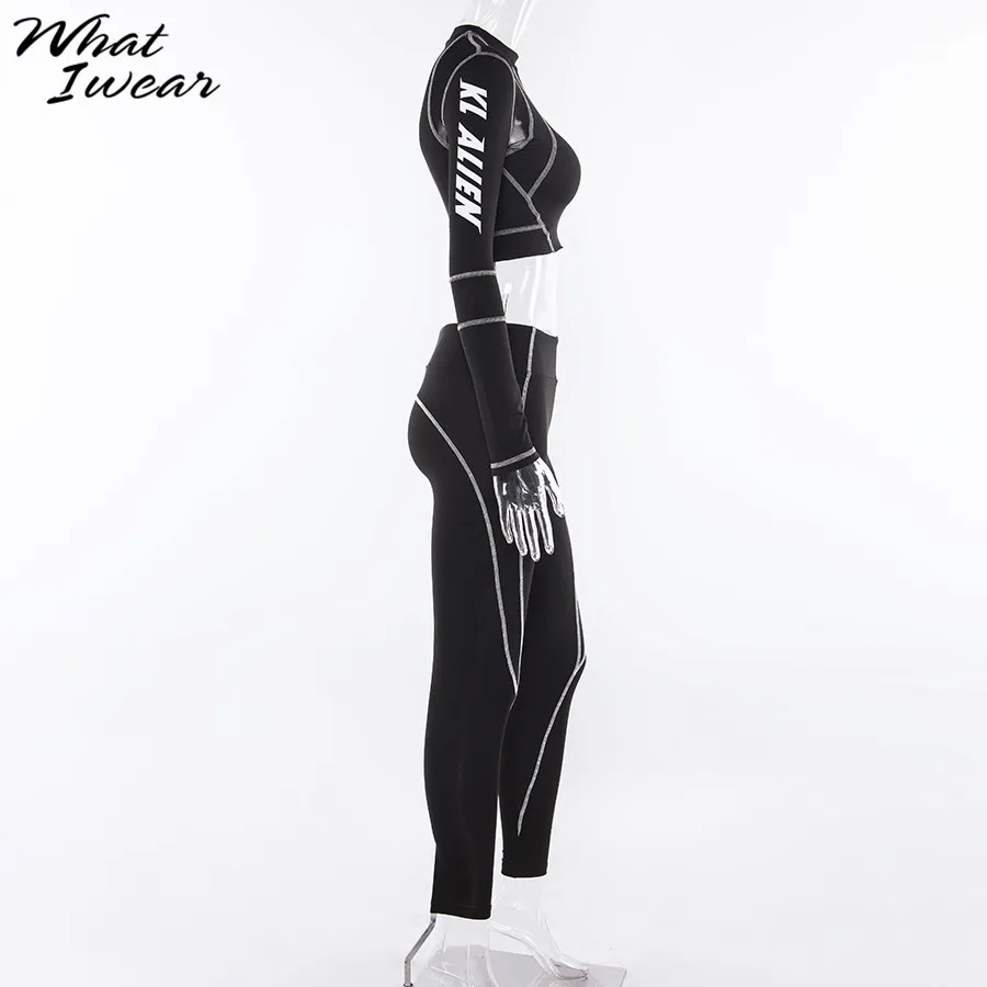 Tracksuit casual Fitness Fashion Slim High Waist full sleeve full length o-neck letter