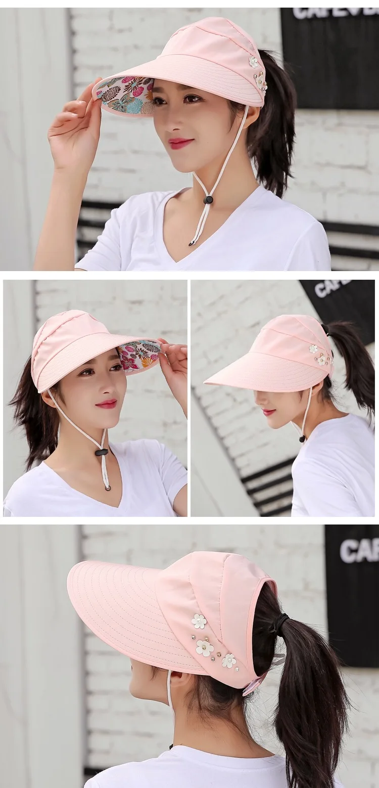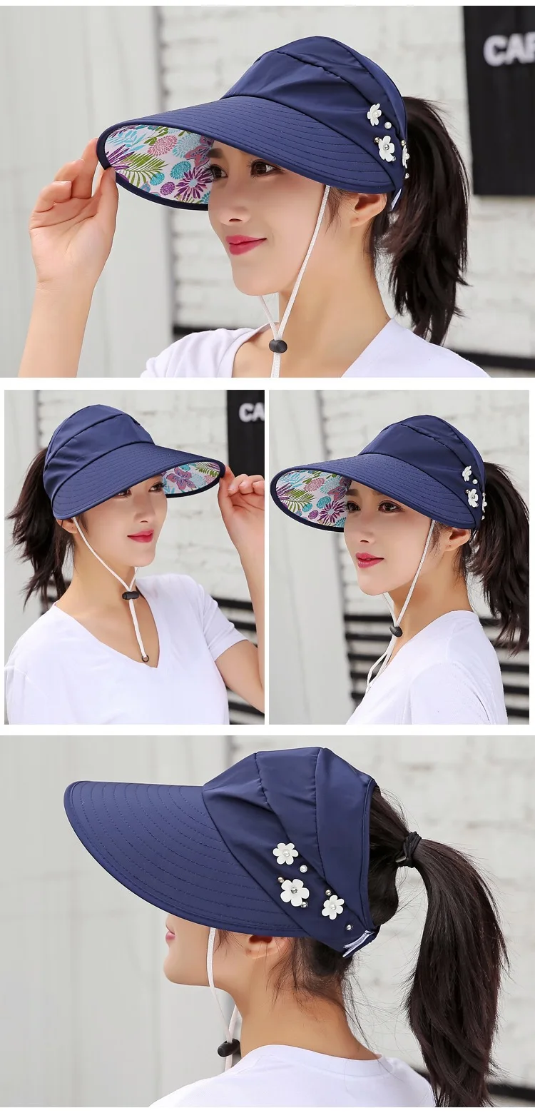 Women Visors Hat Fishing Fisher Beach Hat UV Protection Cap Black Casual Womens Summer Caps