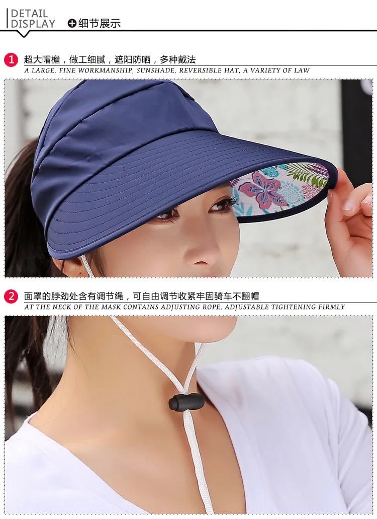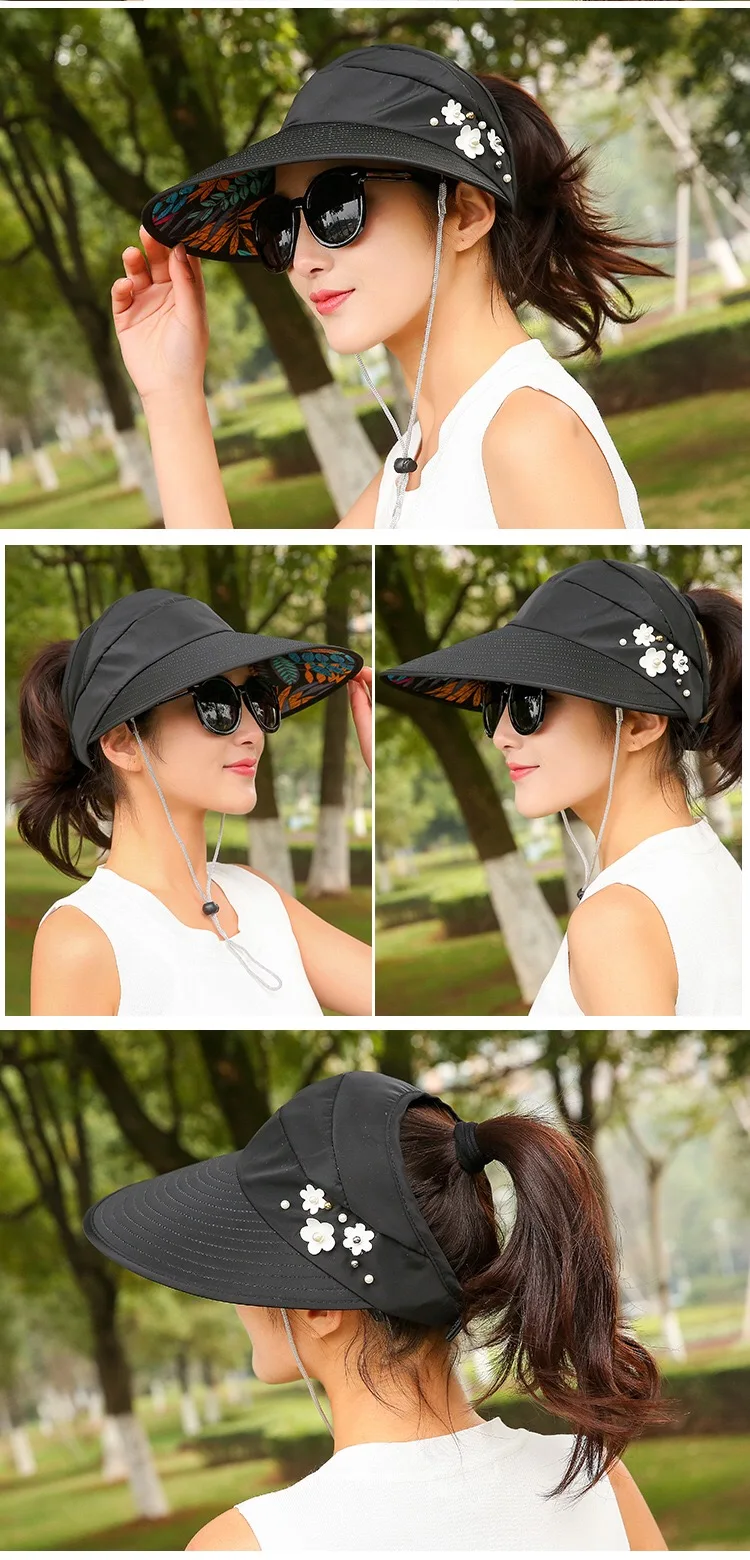 Women Visors Hat Fishing Fisher Beach Hat UV Protection Cap Black Casual Womens Summer Caps