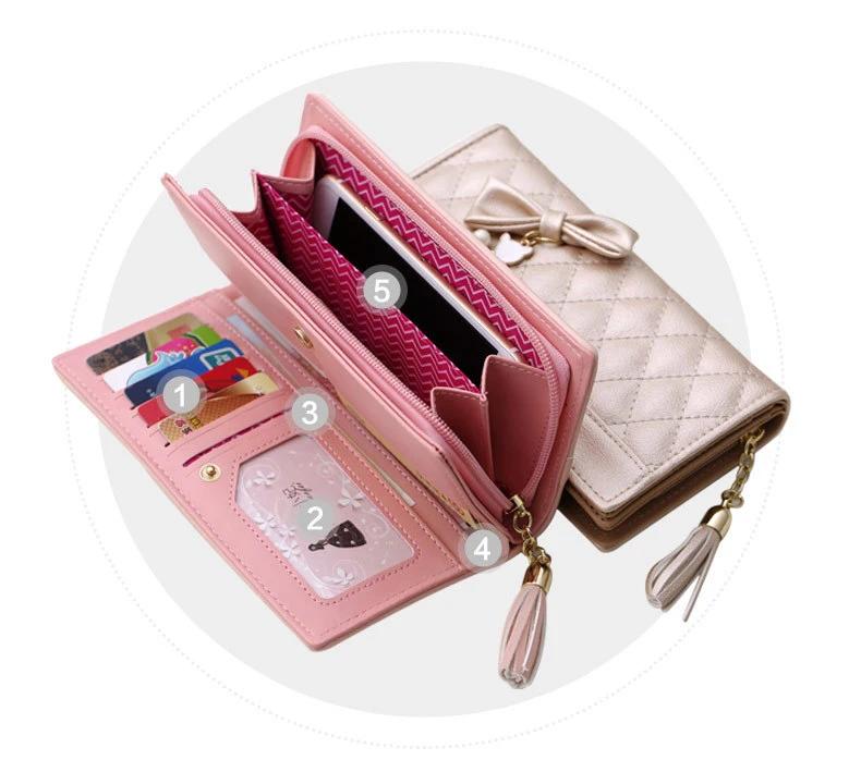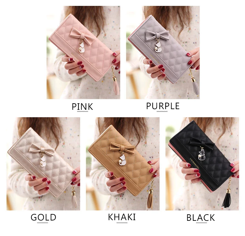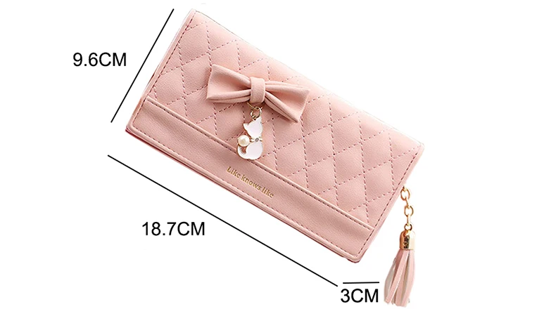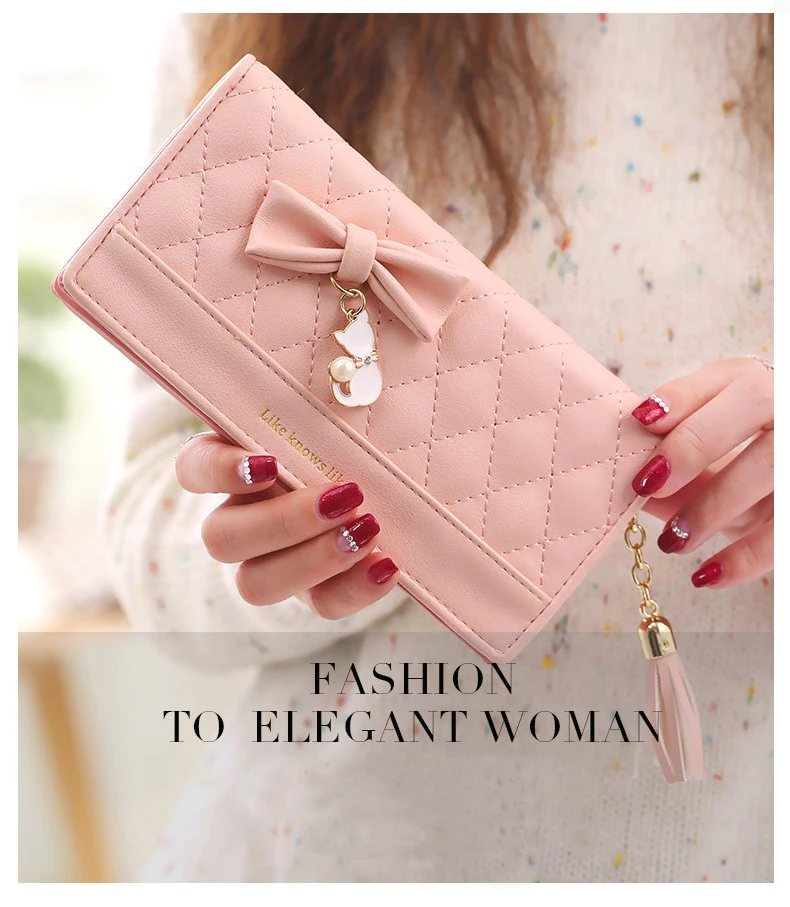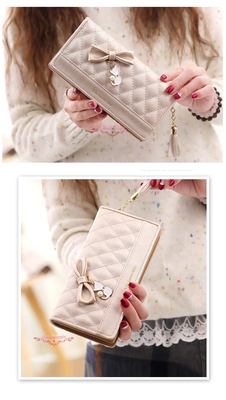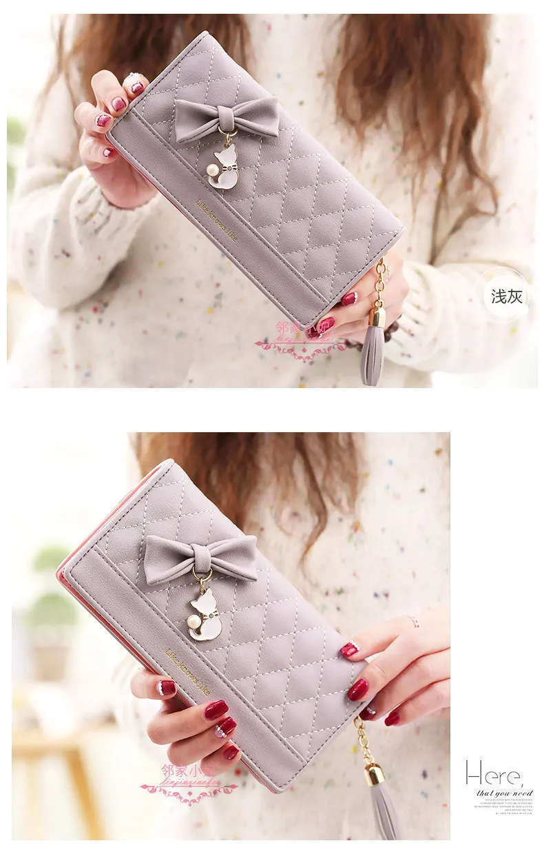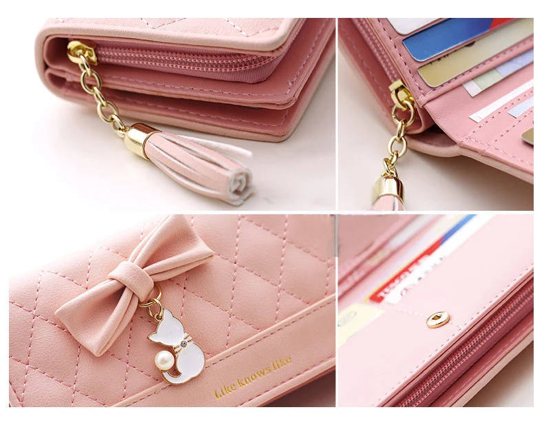 Design of the leather purse with bow and cat pendant,cute and beautiful.
