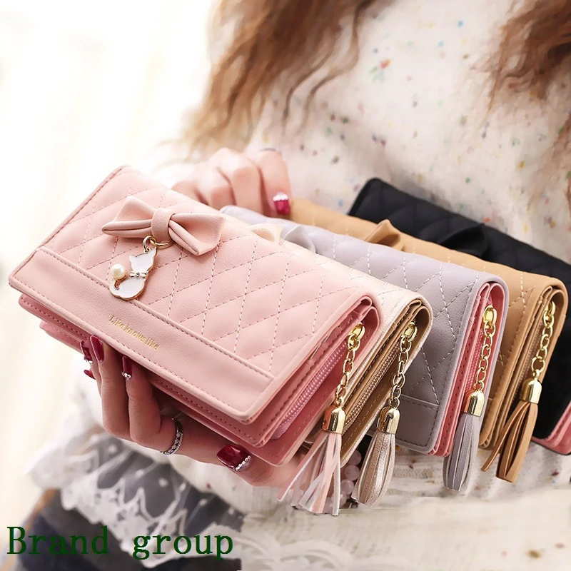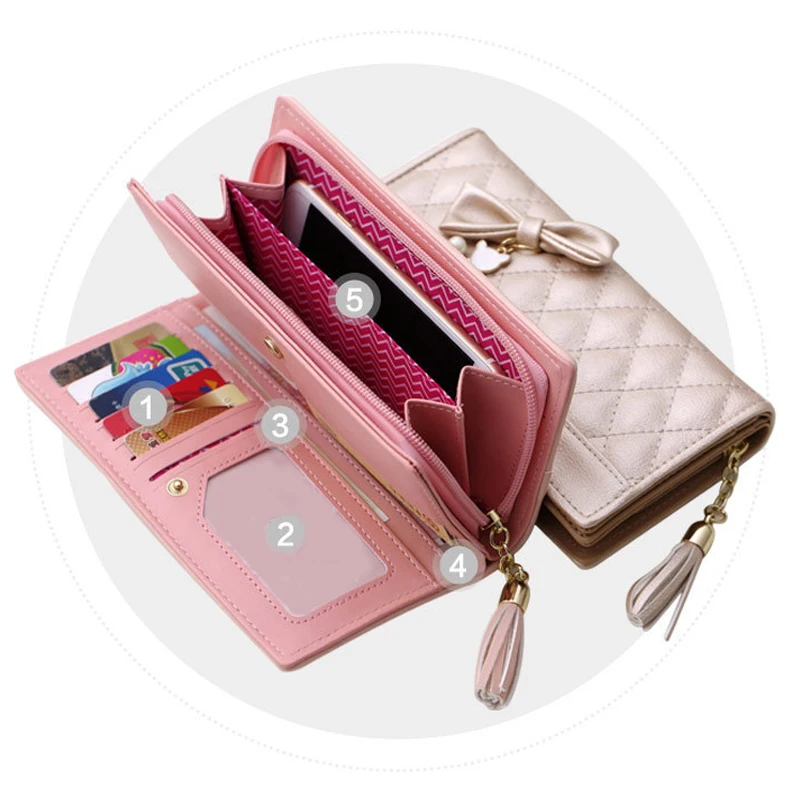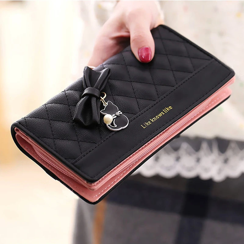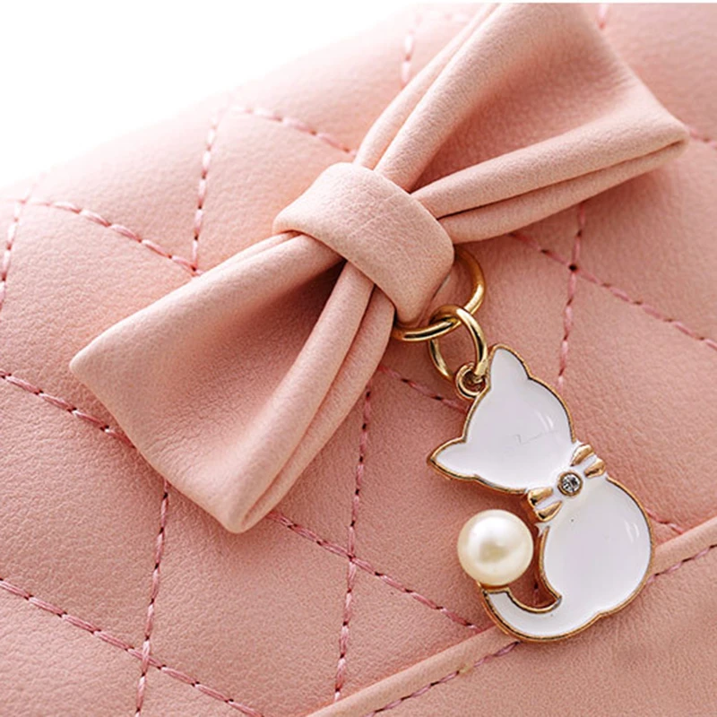 Design of the leather purse with bow and cat pendant,cute and beautiful.