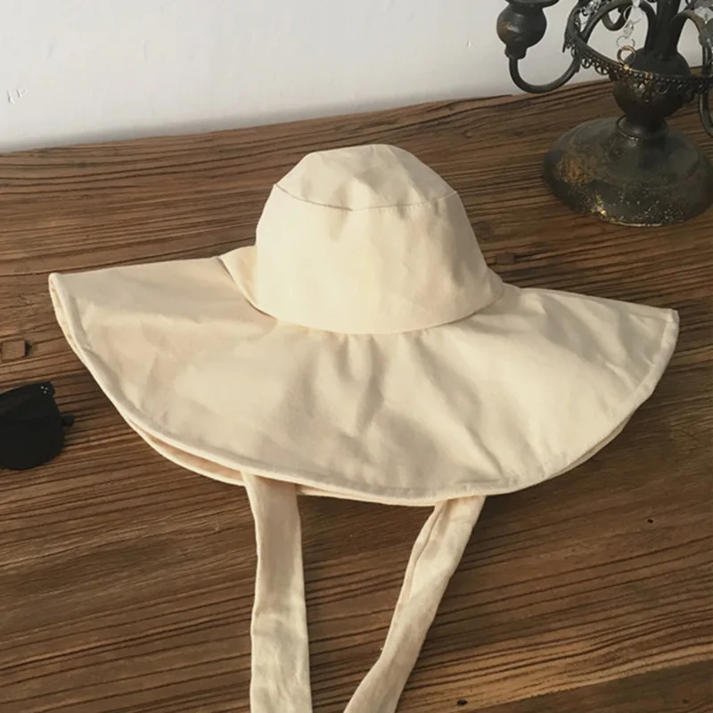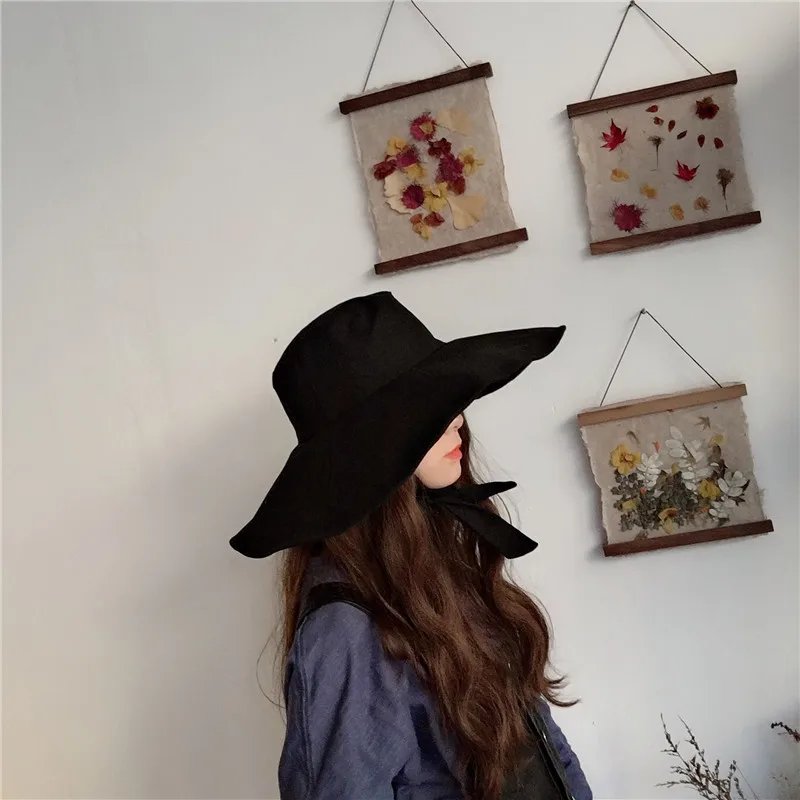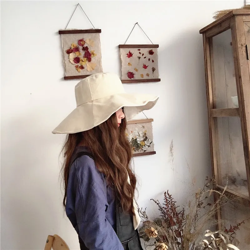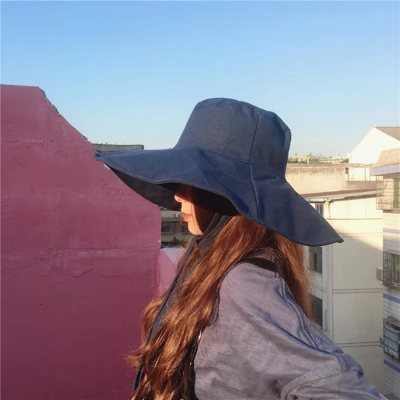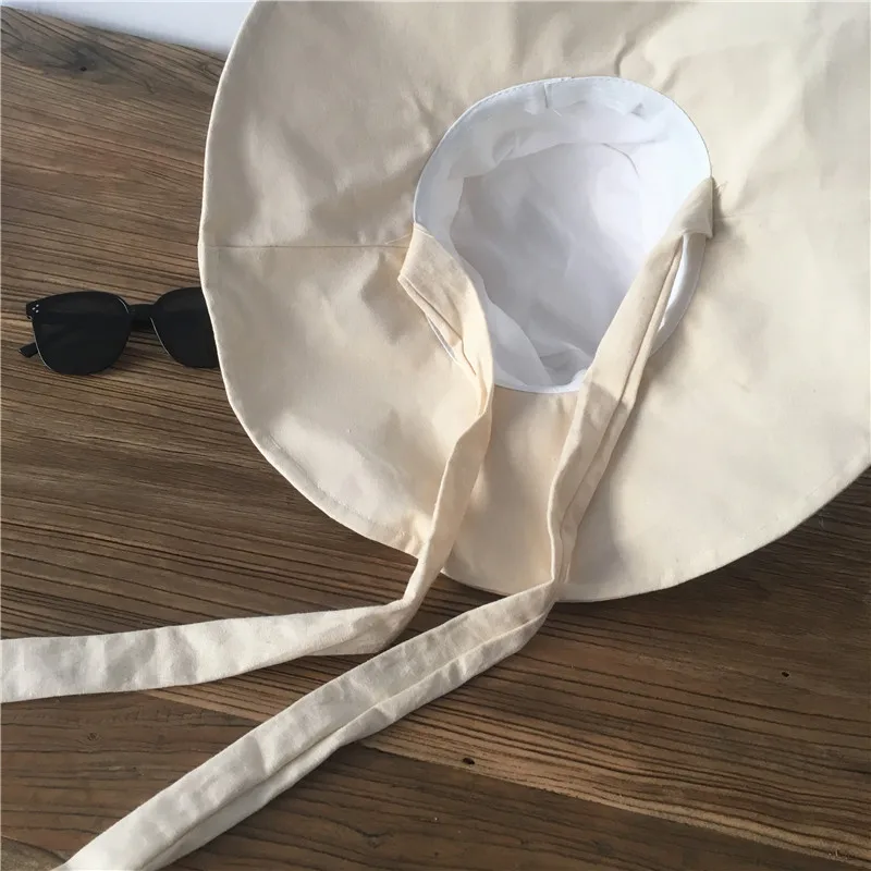 Women’s Large Brim Cotton Hemp Fisherman’s Hat Hat Women Beath Hat Solid Color UV Protection