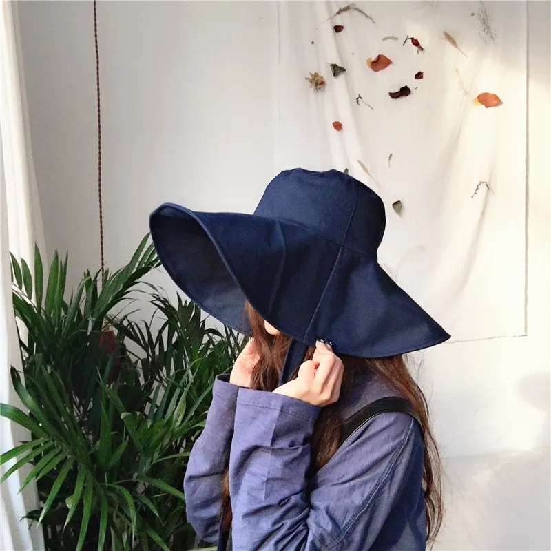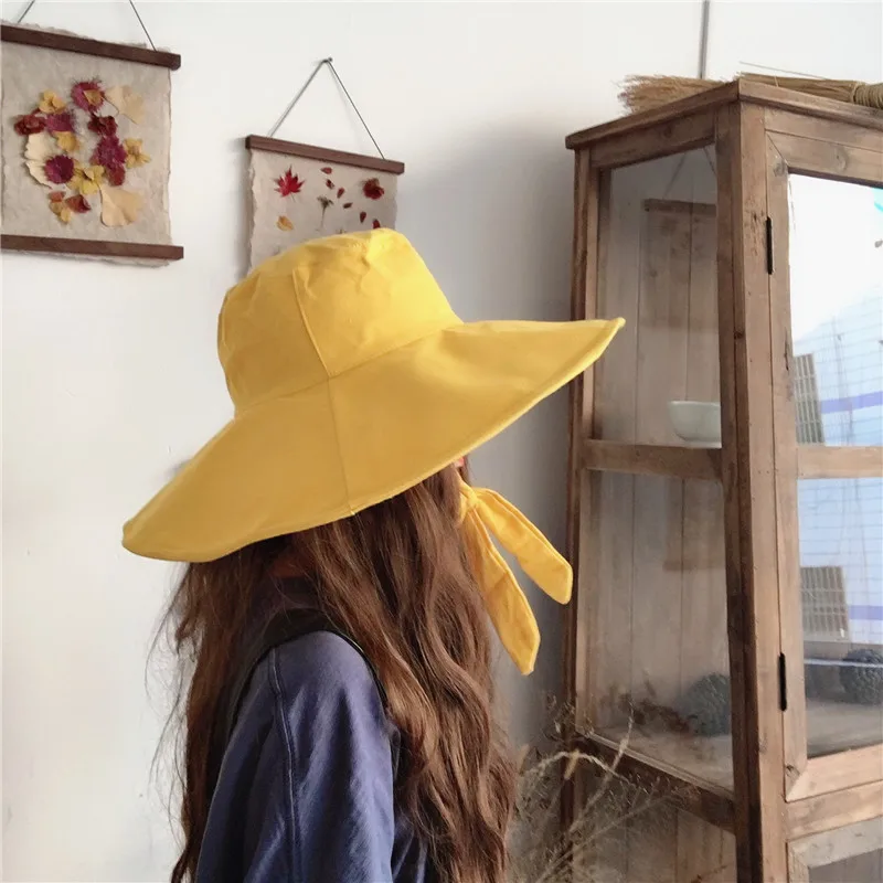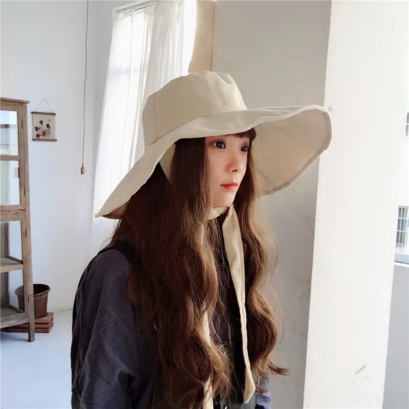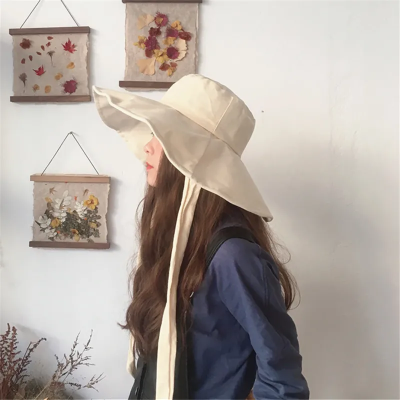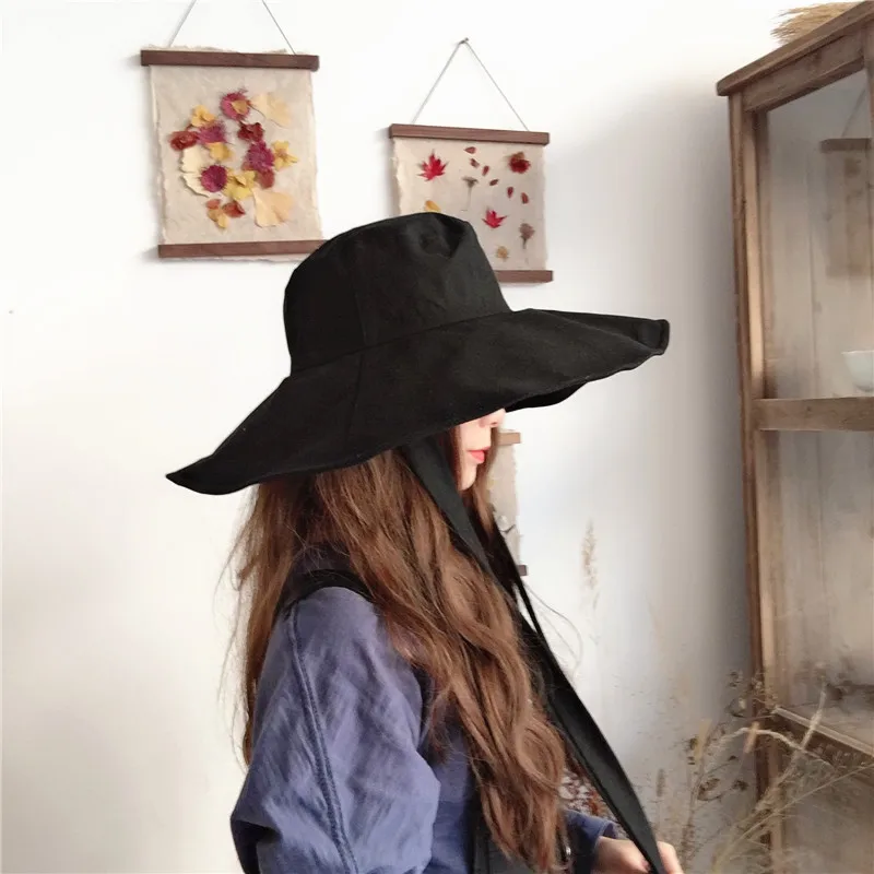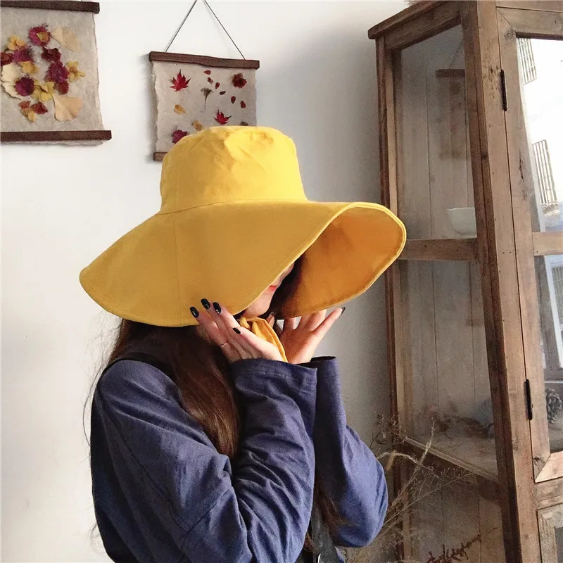 Women’s Large Brim Cotton Hemp Fisherman’s Hat Hat Women Beath Hat Solid Color UV Protection