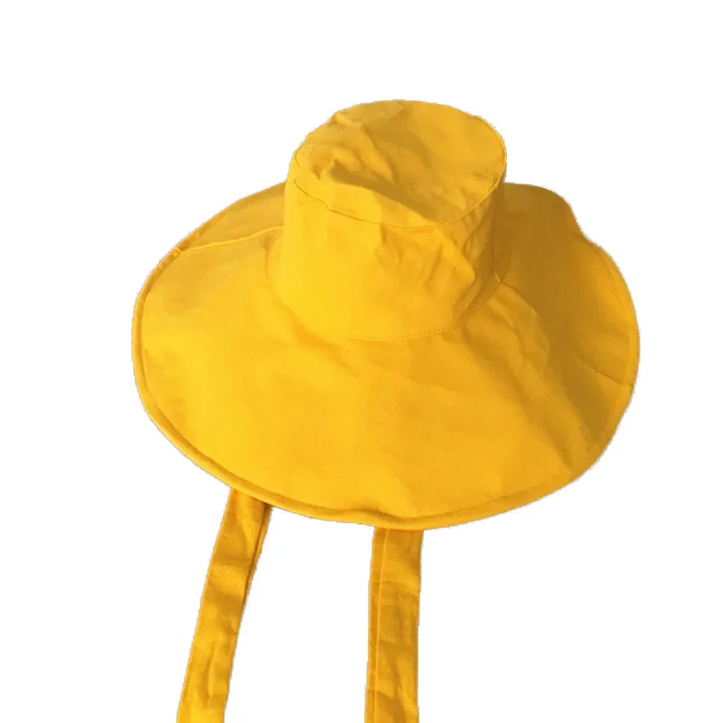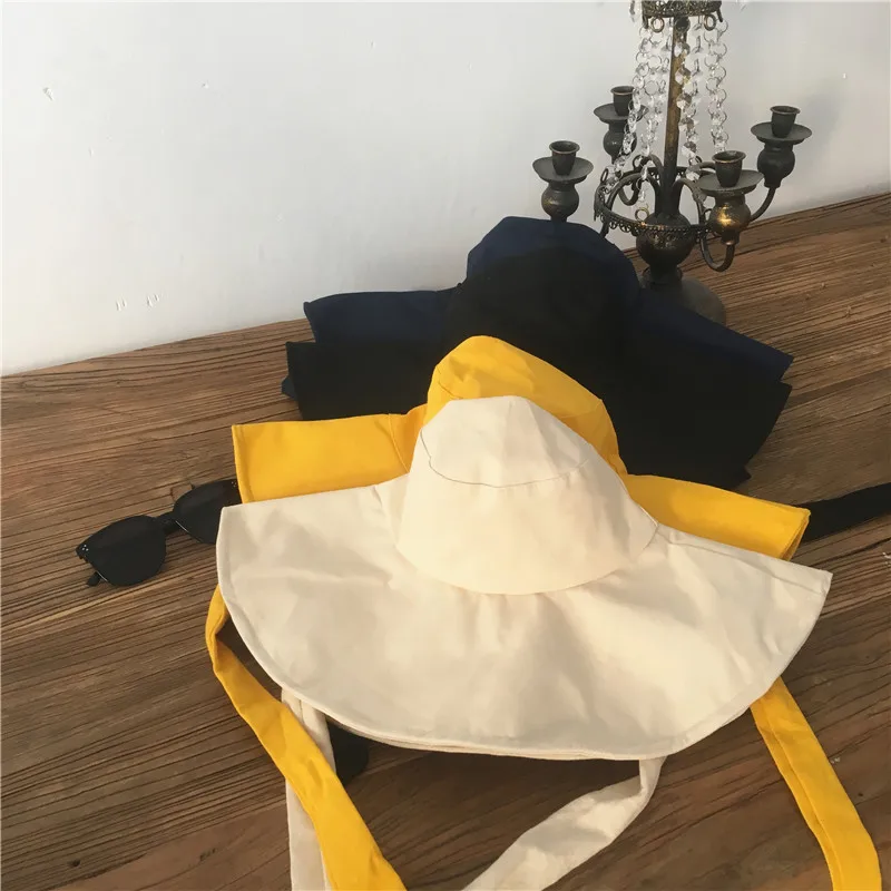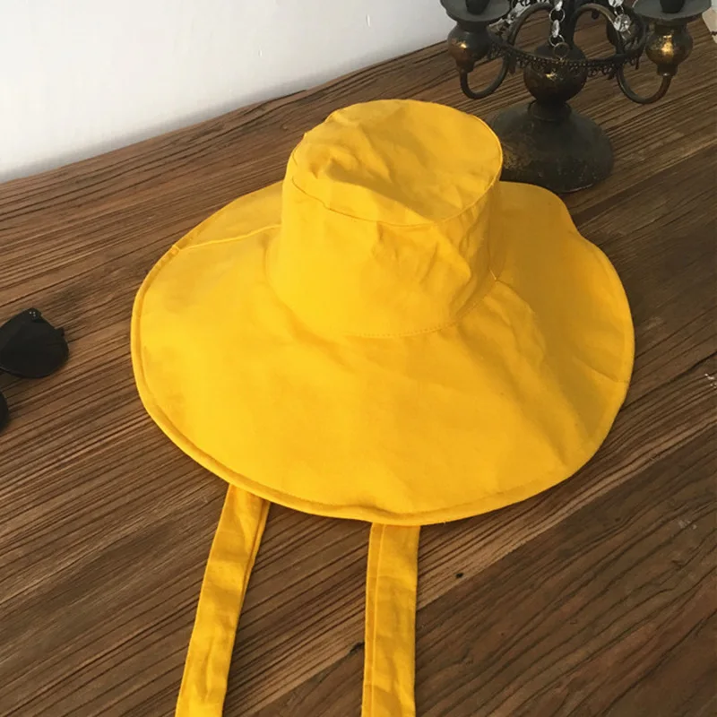 Women’s Large Brim Cotton Hemp Fisherman’s Hat Hat Women Beath Hat Solid Color UV Protection