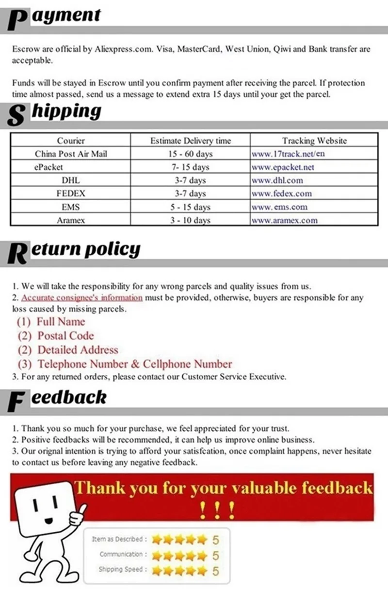 *You can submit refund requests within 15 days after the guaranteed period for delivery (45 days) has expired. You can do it by sending a message on Contact Us page