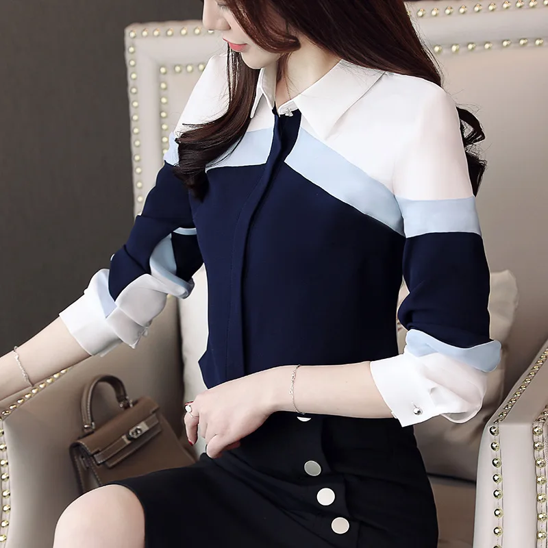 Chiffon blouse shirts women tops long sleeve ladies tops button spliced office lady plus size