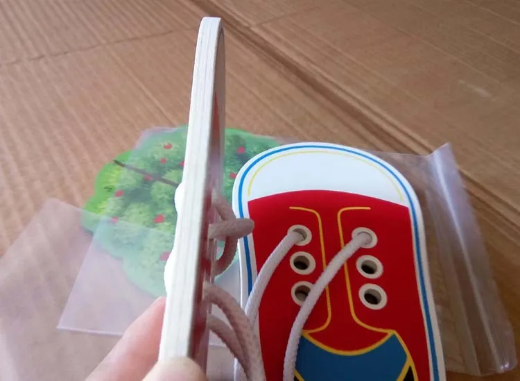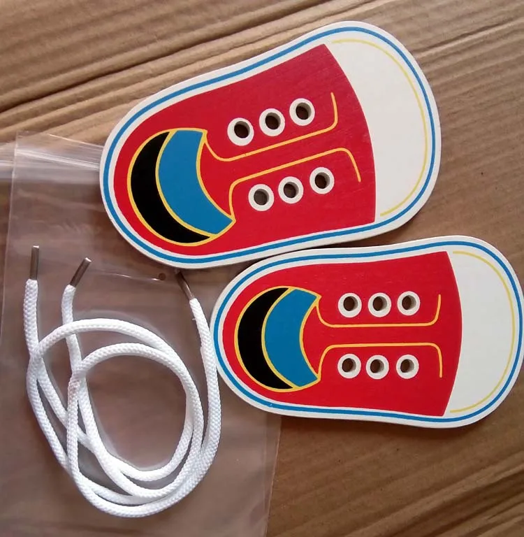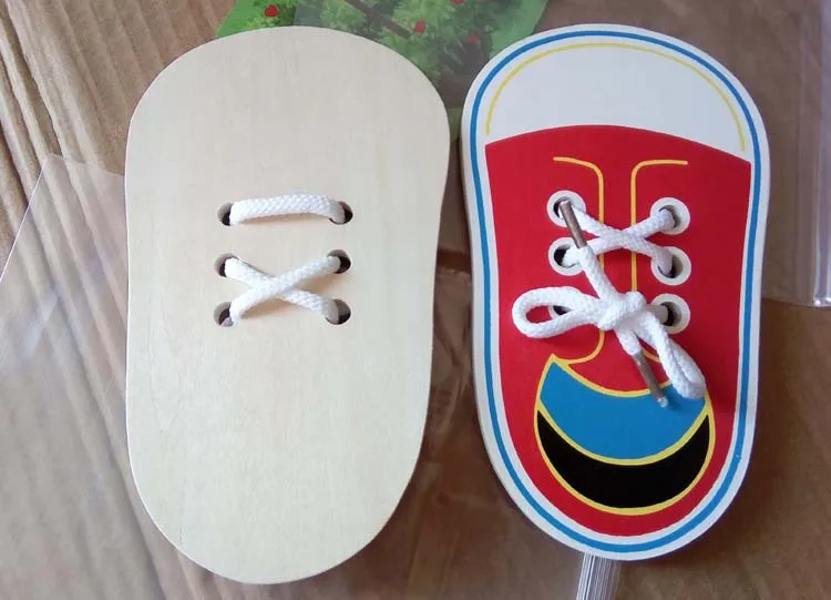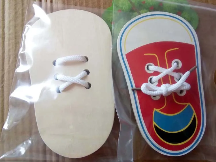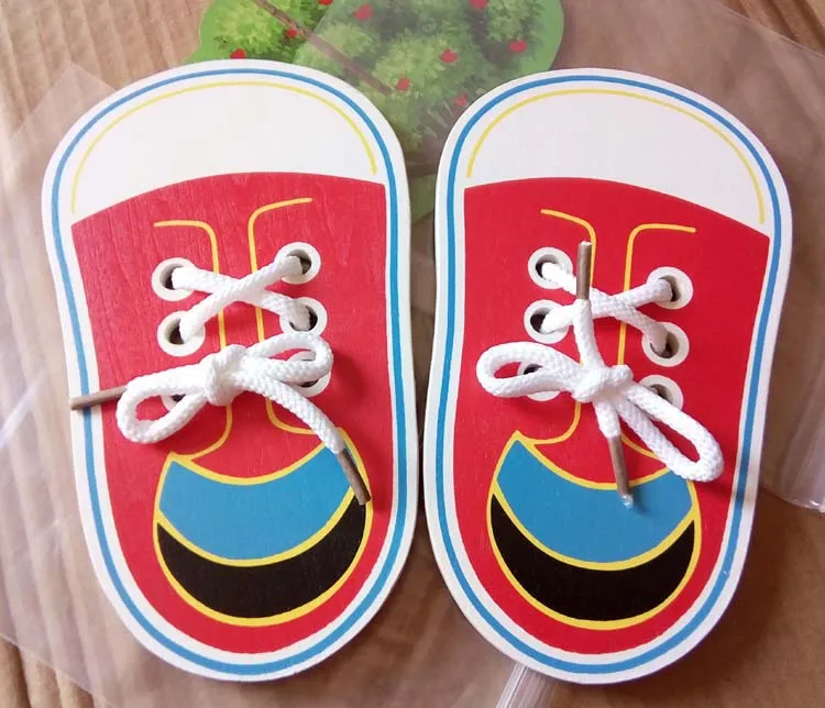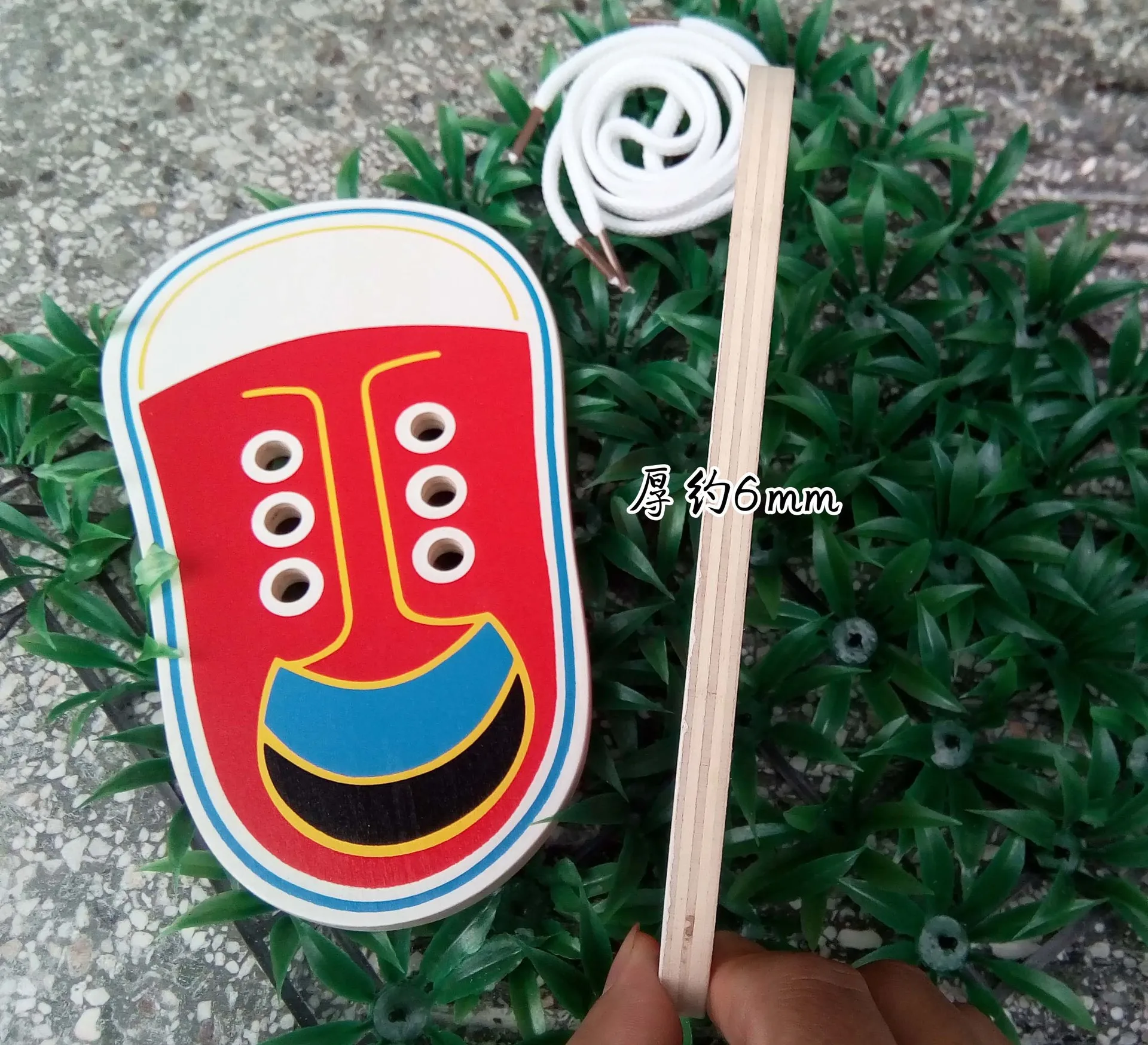 Wooden flat rope shoes children practice laces toddler baby early education educational toys