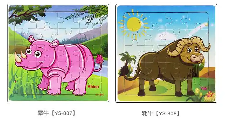 Hot Sale 9/20 Slice Small Piece Puzzle Toy Children Animals and Vehicle Wooden Puzzle Ji