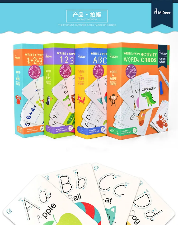 Write and Wipe Off Alphabet Words Math Kid Activity Cards Game Early Learning English Educational Toy Souptoys for Children Gift