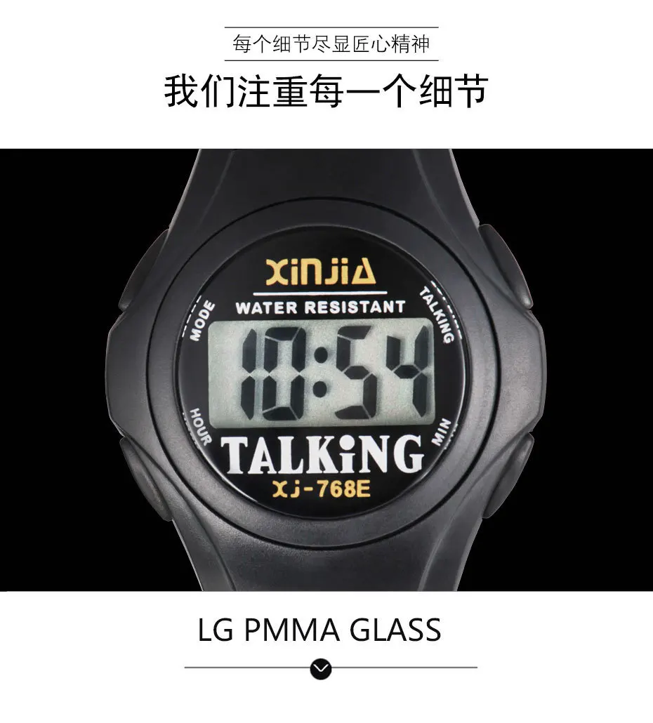 XINJIA New Talking Watch For Blind Men Women Casual Sport Digital Elderly Visially Impaired Italian Arabic Russian Korean Time