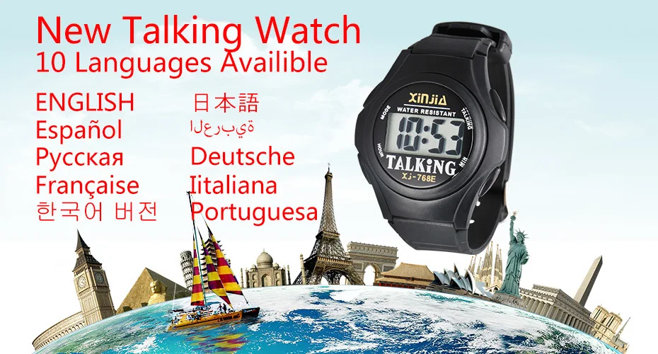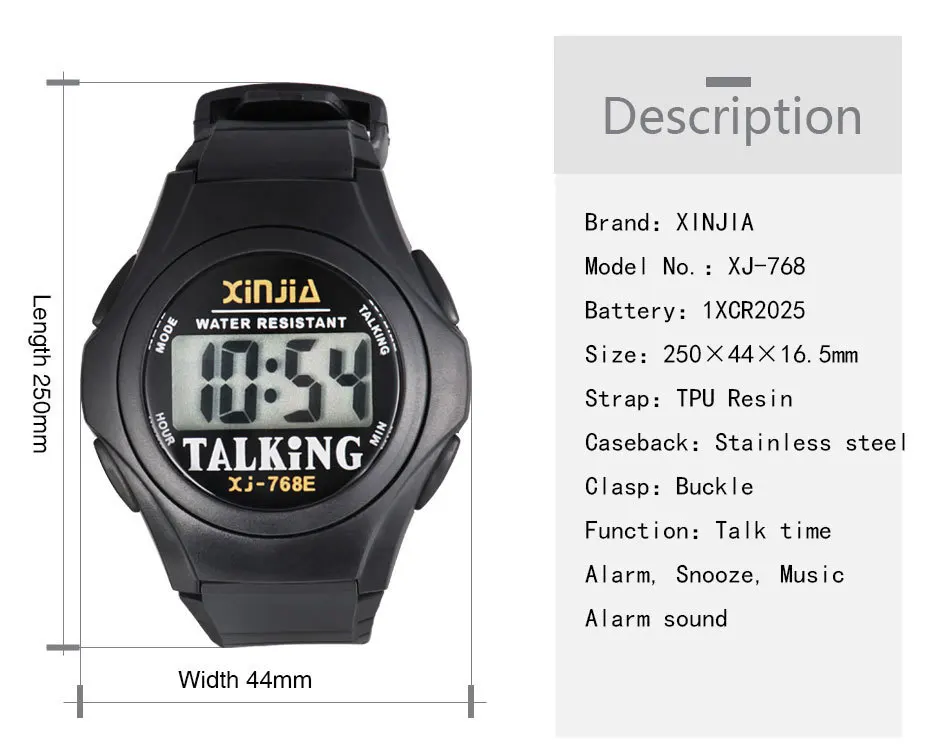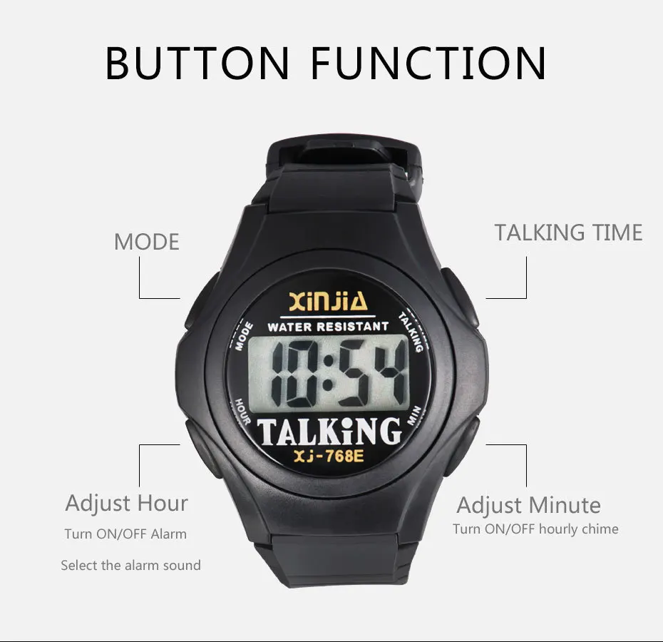 XINJIA New Talking Watch For Blind Men Women Casual Sport Digital English Russian Spanish Italian Arabic Japanese Korean French