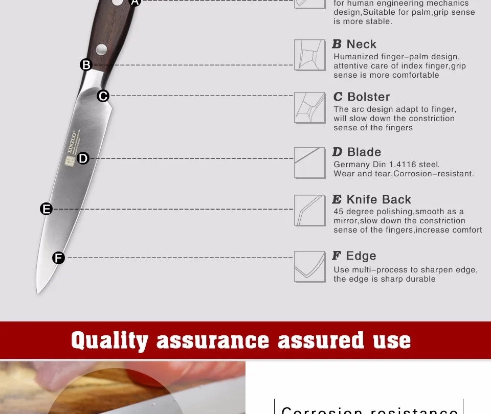 Handle: exquisite rosewood handle, optical lens processing. Use for a long time not to distort, not faded, not shrinking, tasteless environmental protection .