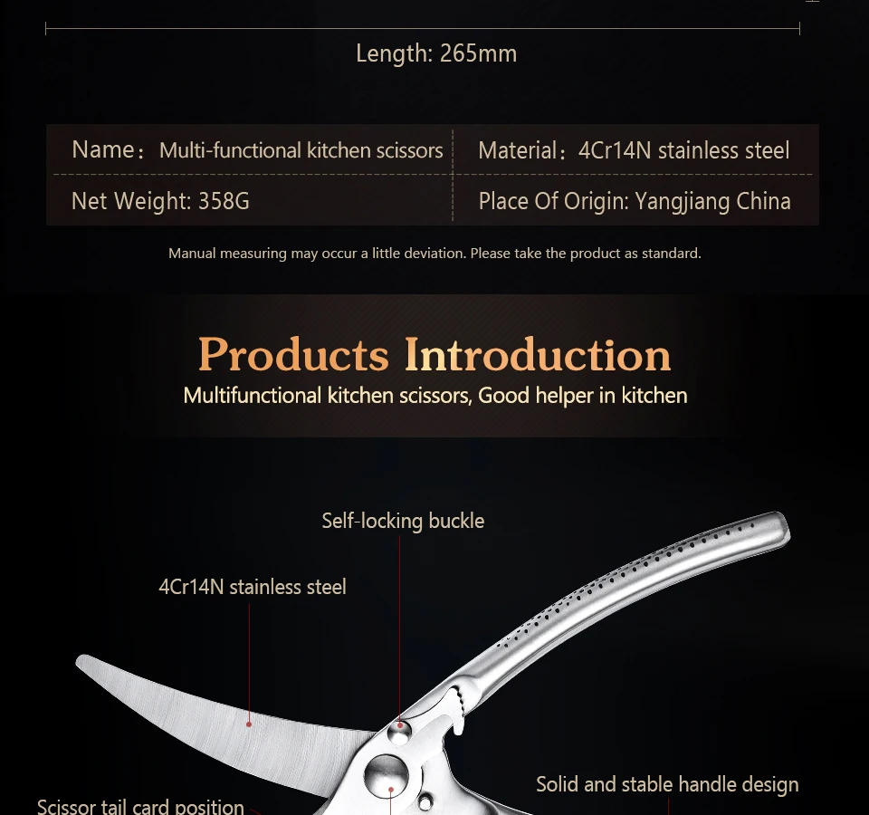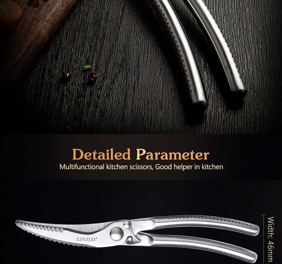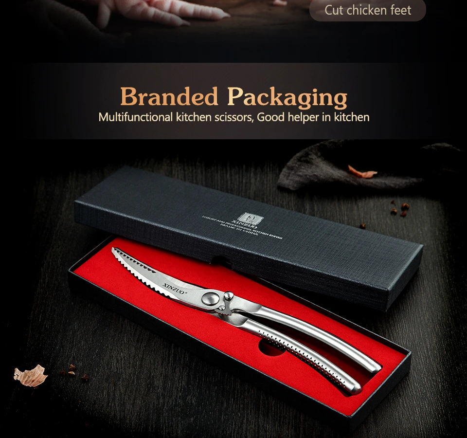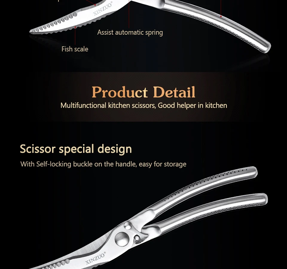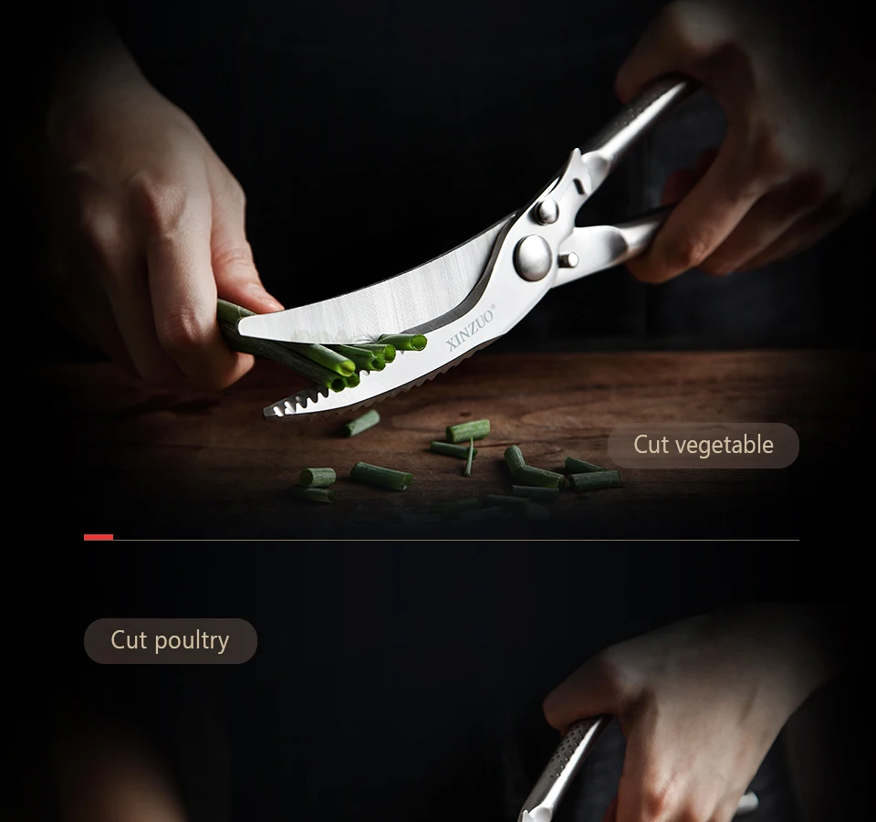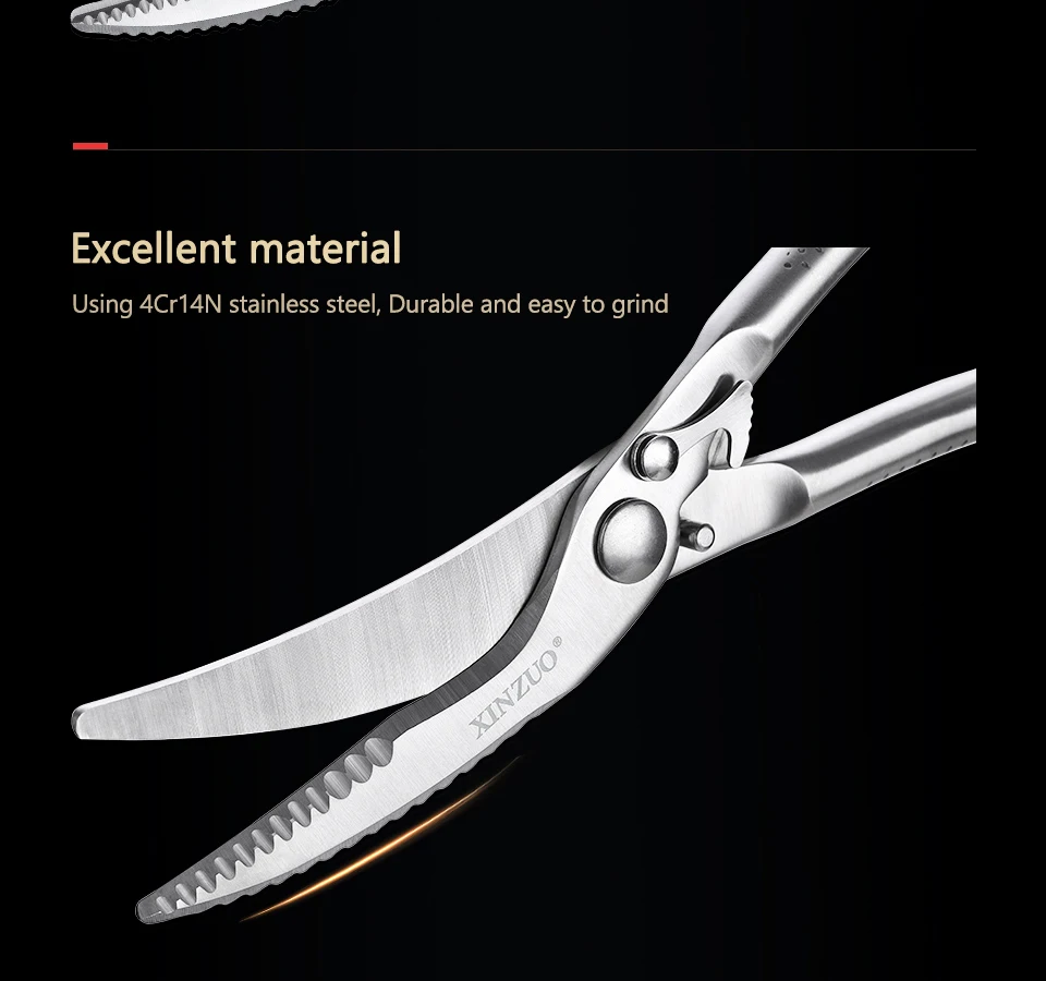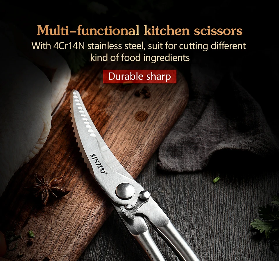 XINZUO Kitchen Scissors 4Cr14N Stainless Steel Kitchen Knives Brand Durable Sharp Shear Cut Chicken Poultry Fish Meat Vegetables