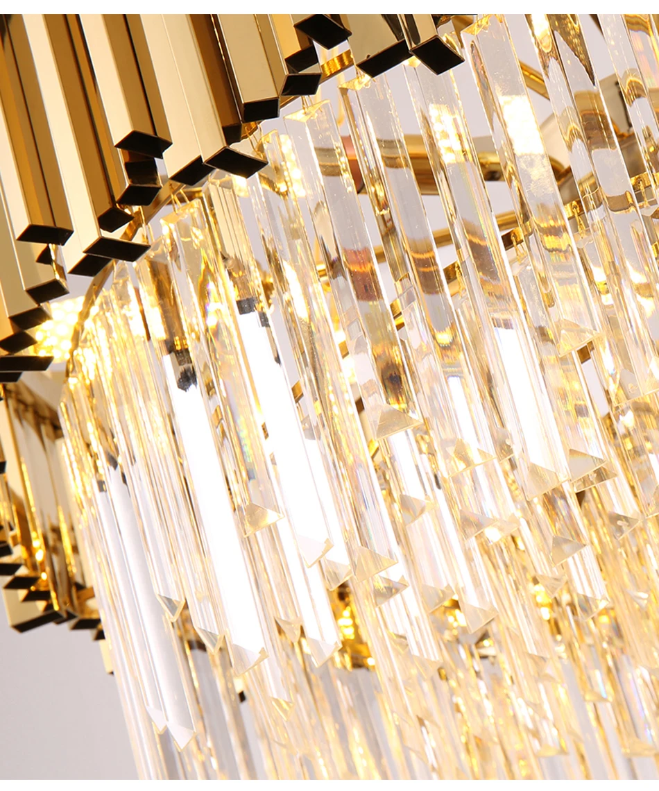 A: the chandelier is combination of stainless steel, squar tube and finest K9 crystal