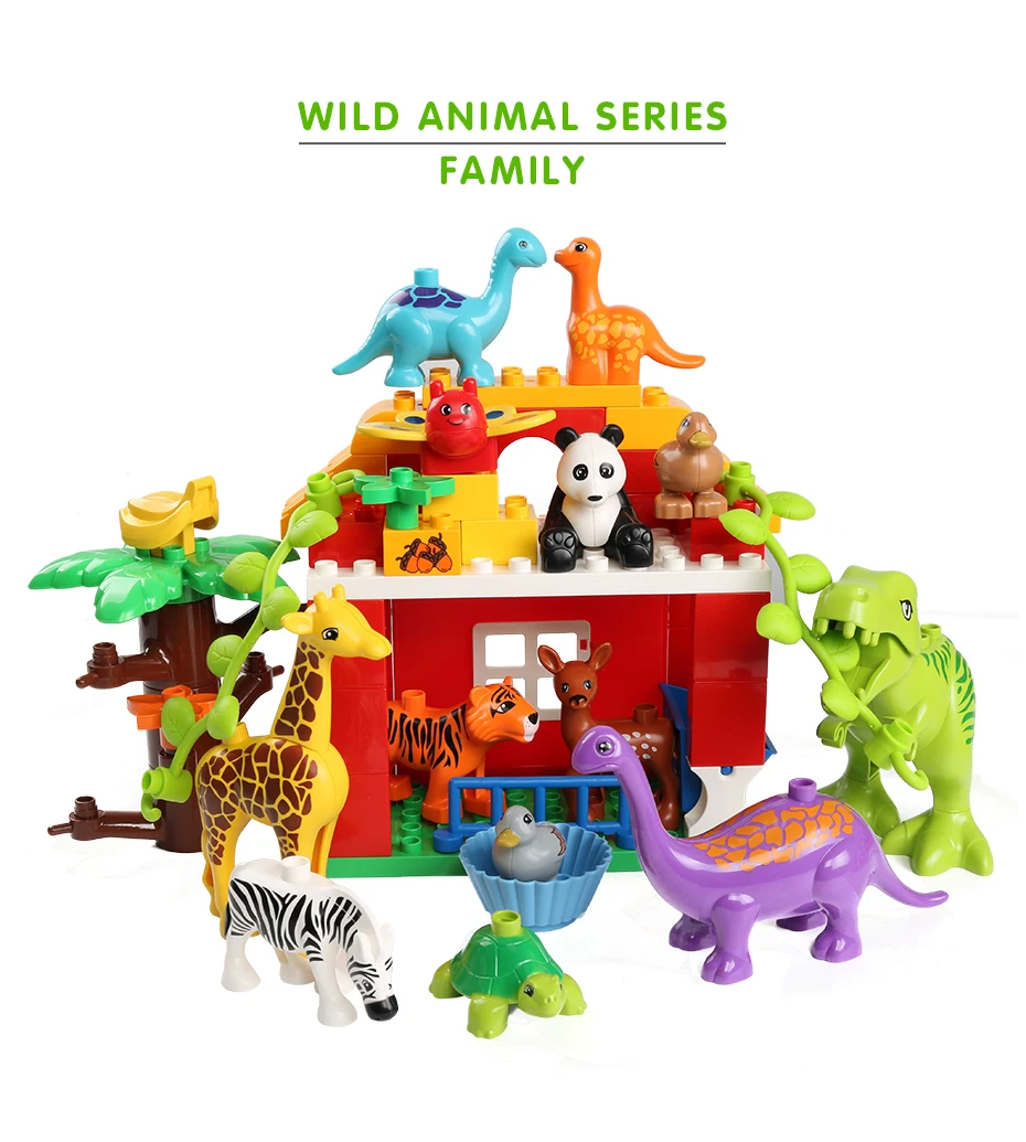 Zoo Animals Figures Building Blocks Big Size Accessories Compatible Duploed Blocks Educational DIY Brick Toys For Children Gift