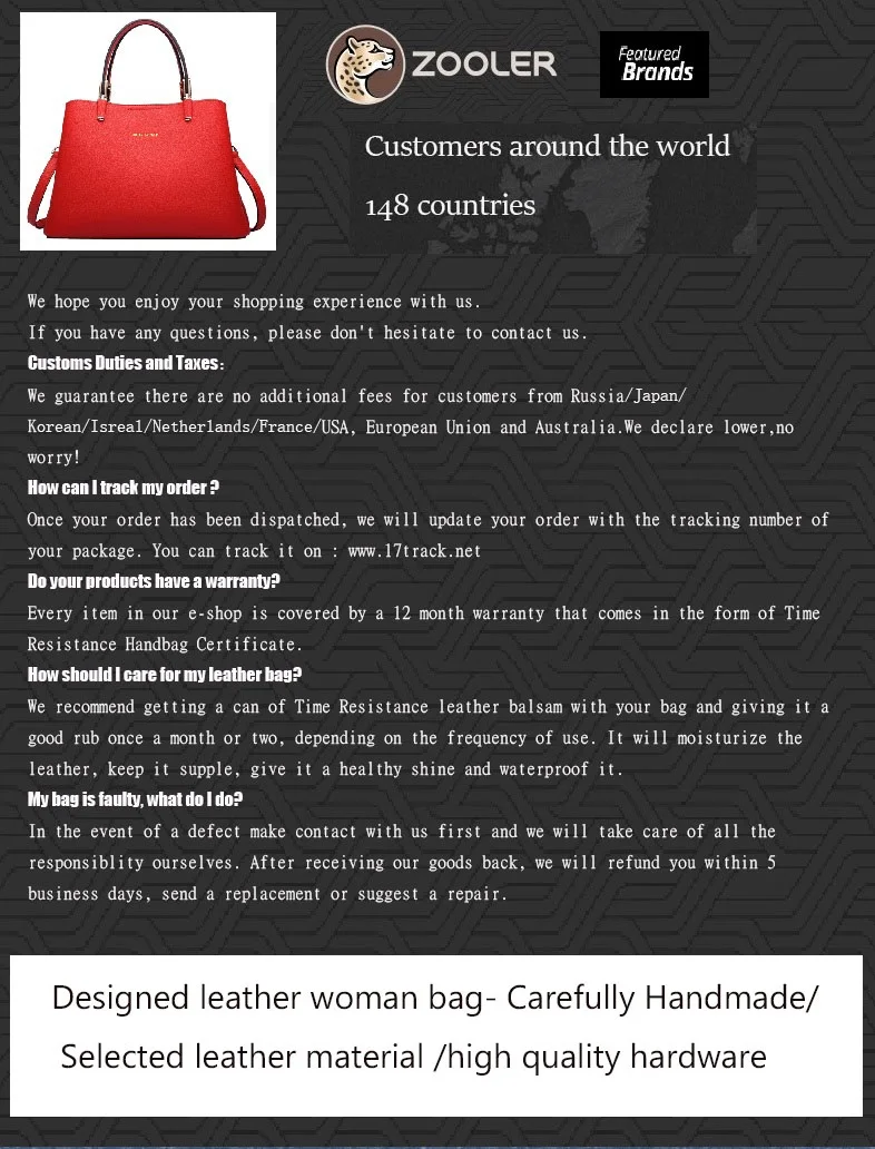 High Quality genuine leather material, welcomed by almost all office lady across the world!
